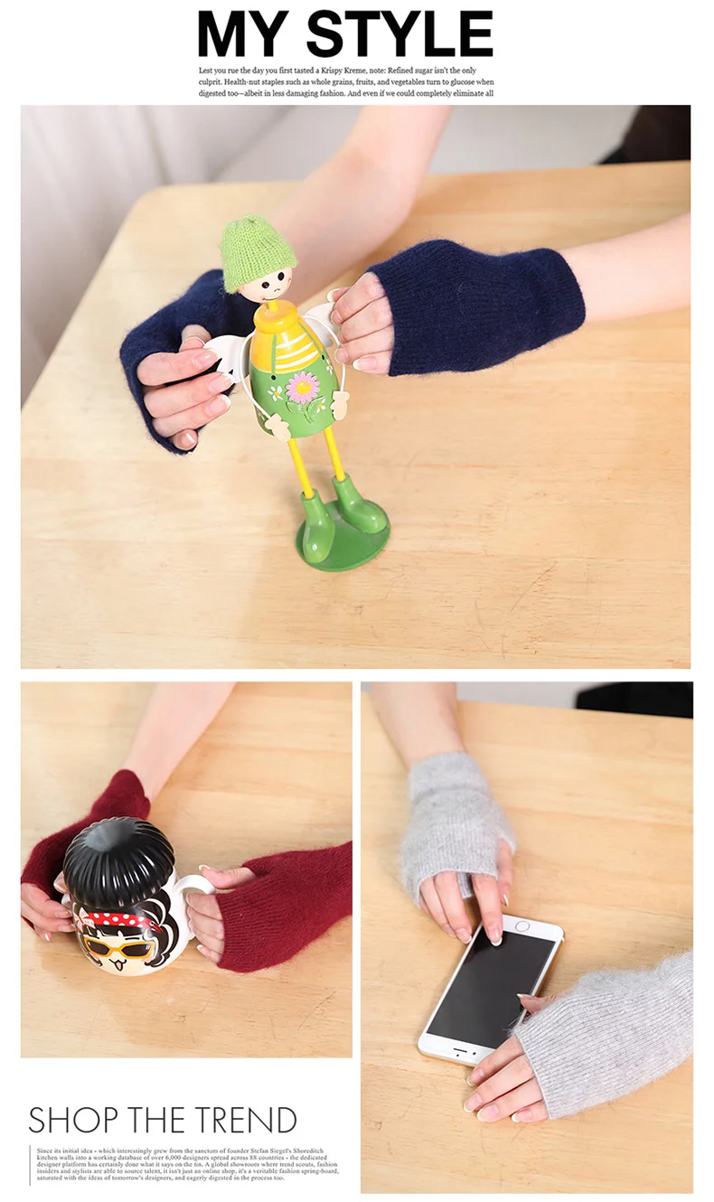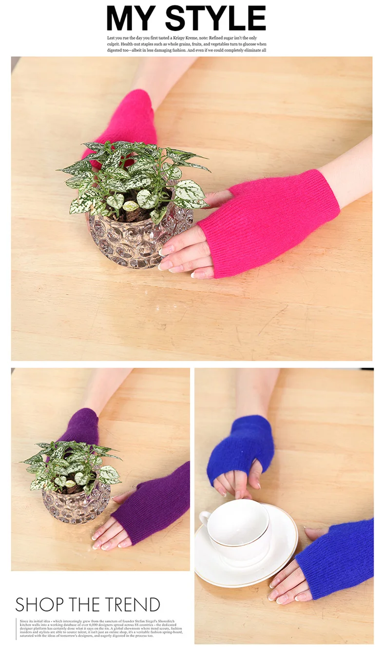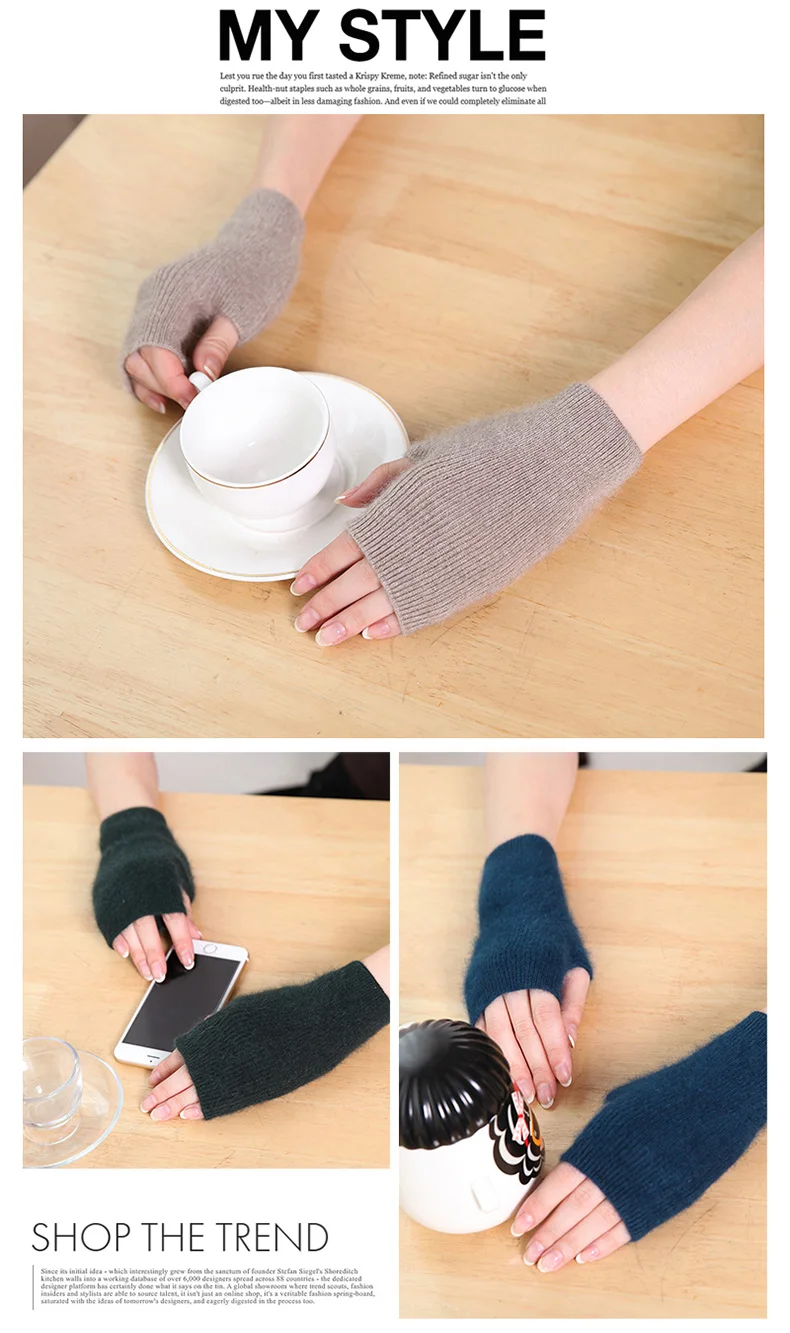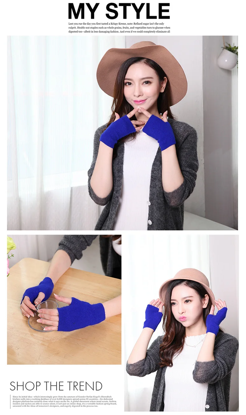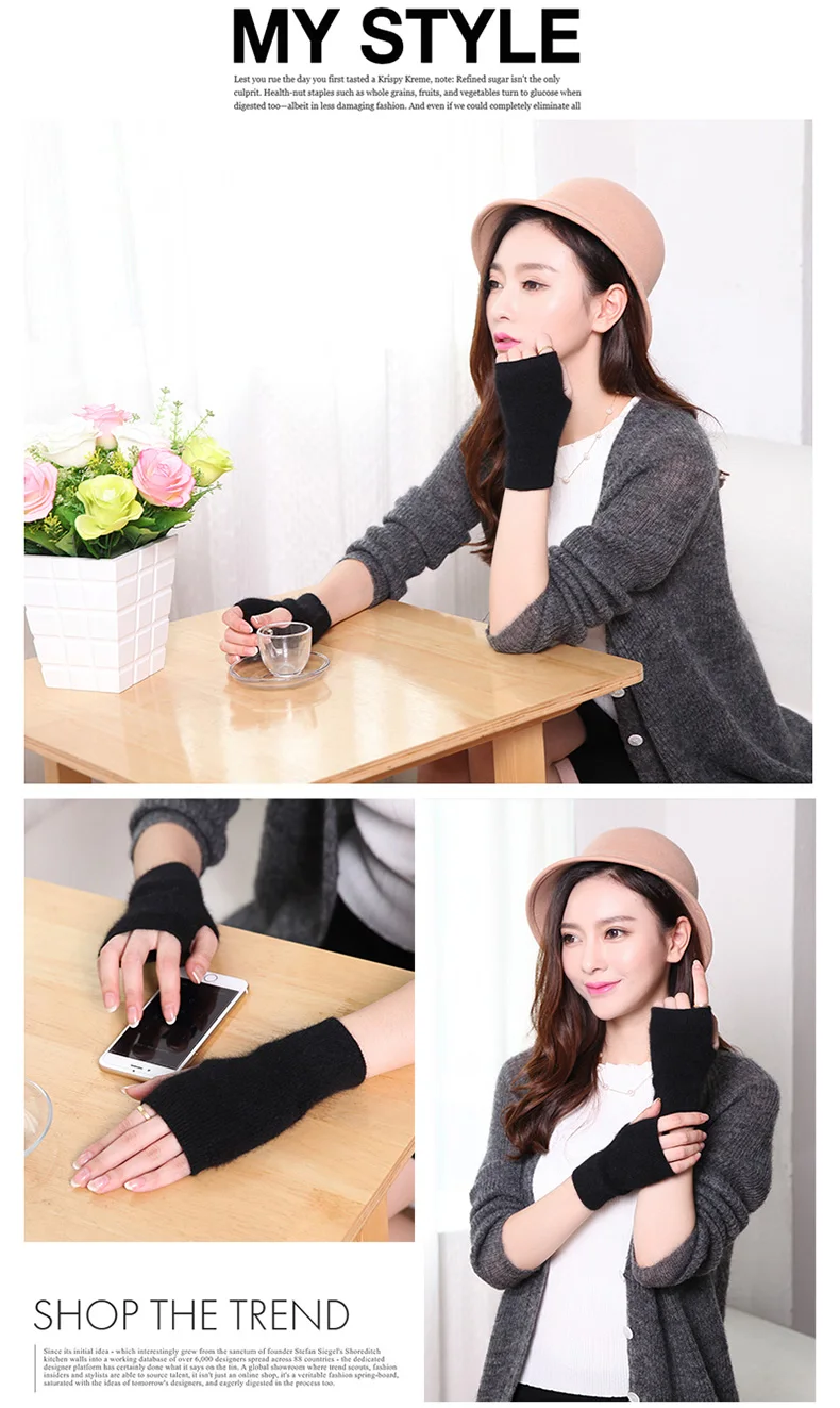 100% Mink Cashmere Knitted Gloves Winter Women’s Gloves Half Finger Writing Office Cycling Warm