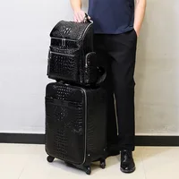 100% Real Leather travel luggage with handbag men head cowhide universal wheel crocodile pattern suitcase