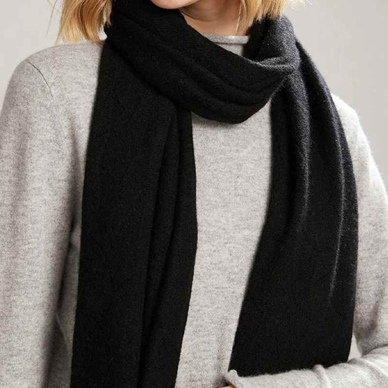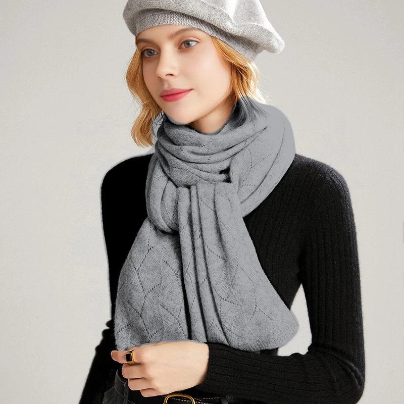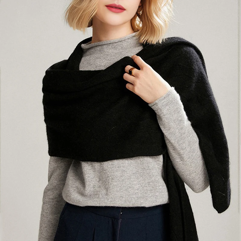 100% Wool Knitted Long Scarf For Women Winter Soft Warm Fashionable Stylish Two-In-One Scarf Shawls Hollow