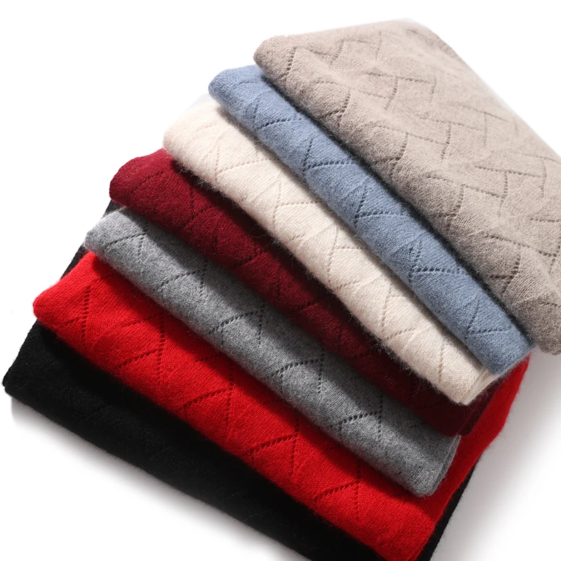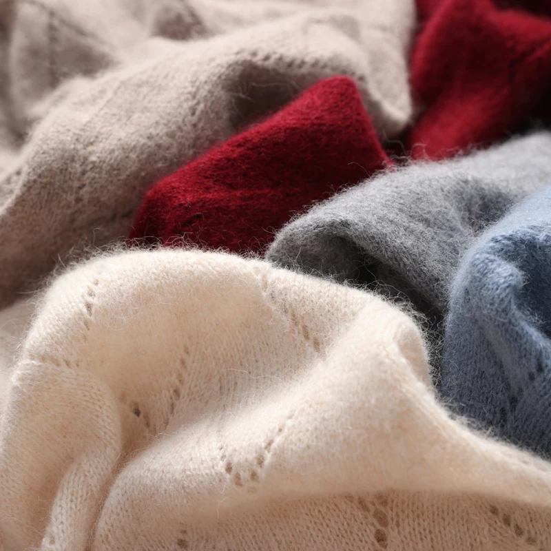 Women 100%Wool Knitted Long Scarf Autumn Winter Solid Fashion Hollow Out Shawls Soft Warm Cashmere Elegant Neck Warmer Girl