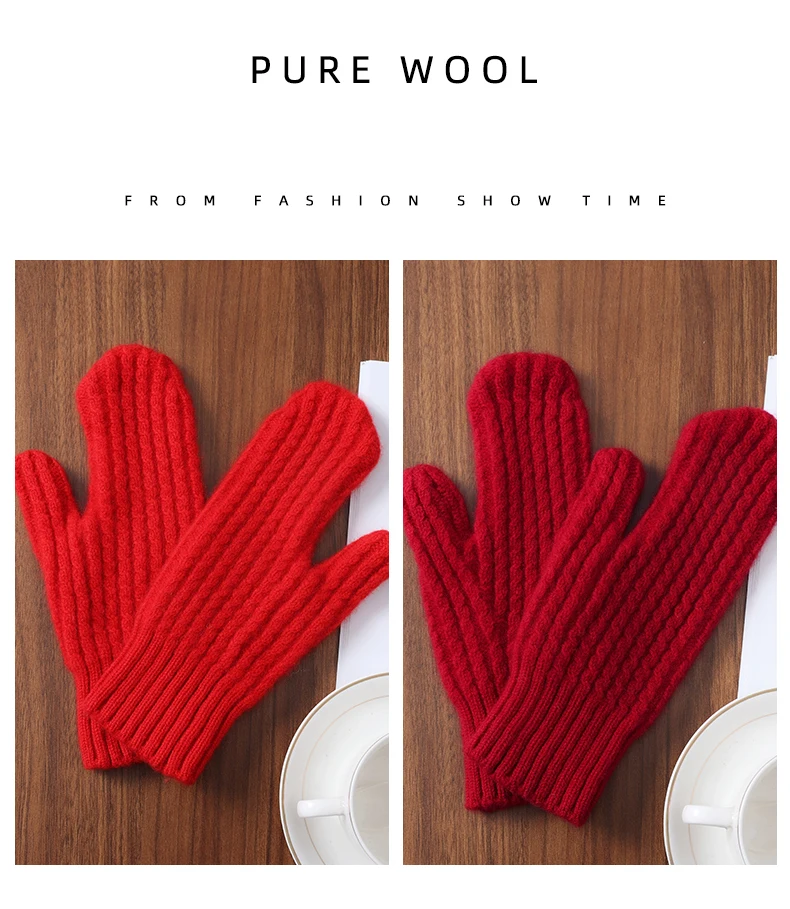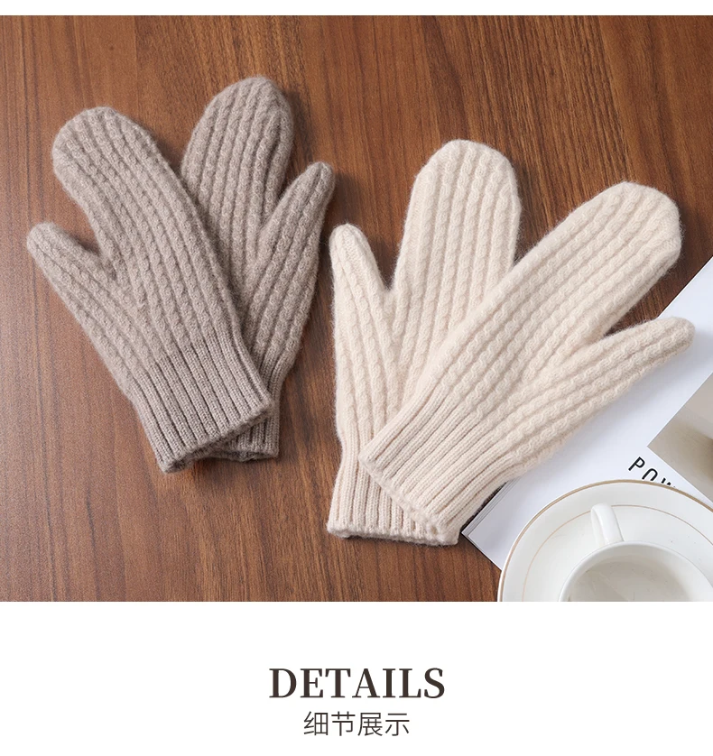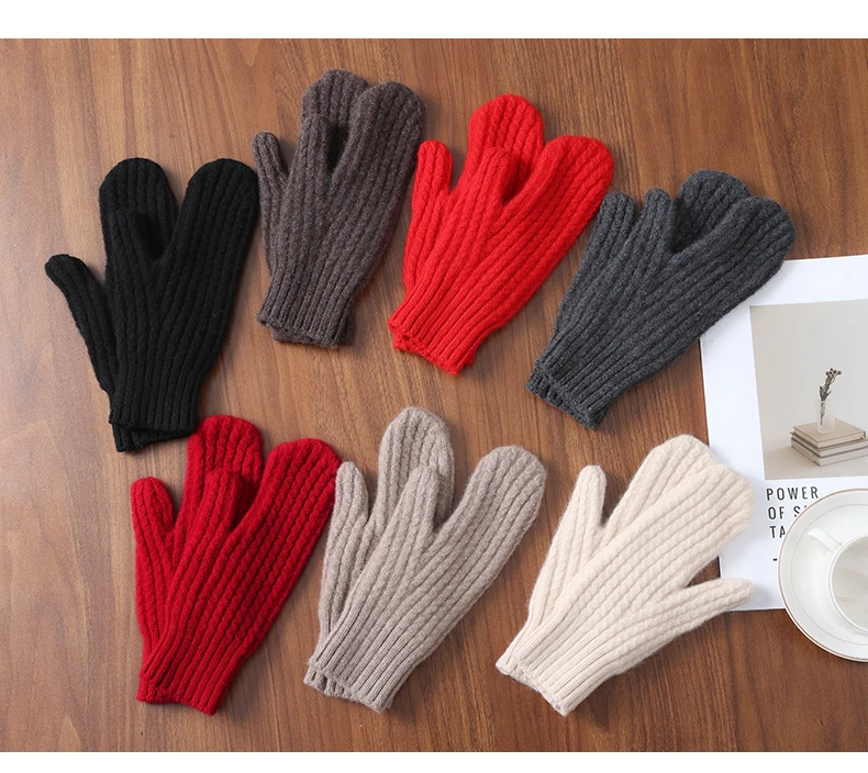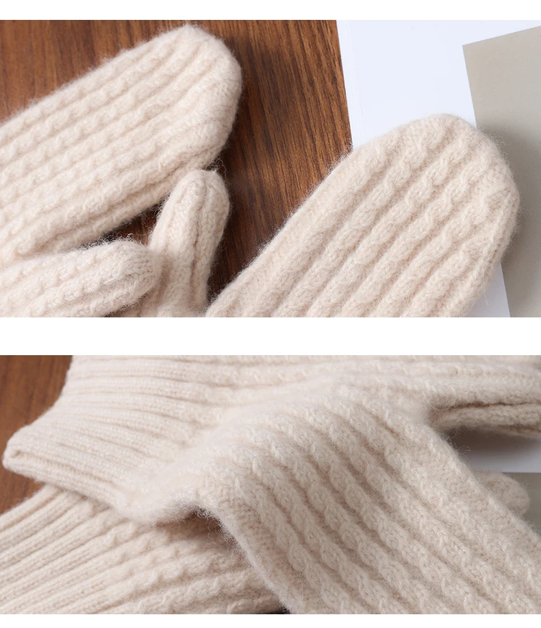 Women Winter Warm Knitted Full Finger Gloves Solid Wool Luxury Rhinestone Touch Screen Mittens Female Drving guantes mujer