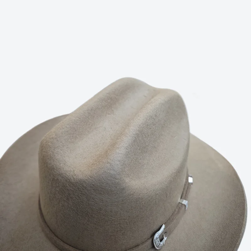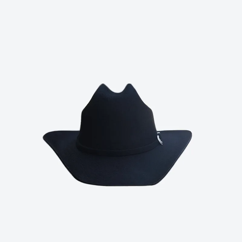 100% Wool Western Curved-brimmed Cowboy Hat Solid Color Woolen Felt Hat Fedora Caps Fascinator Women
