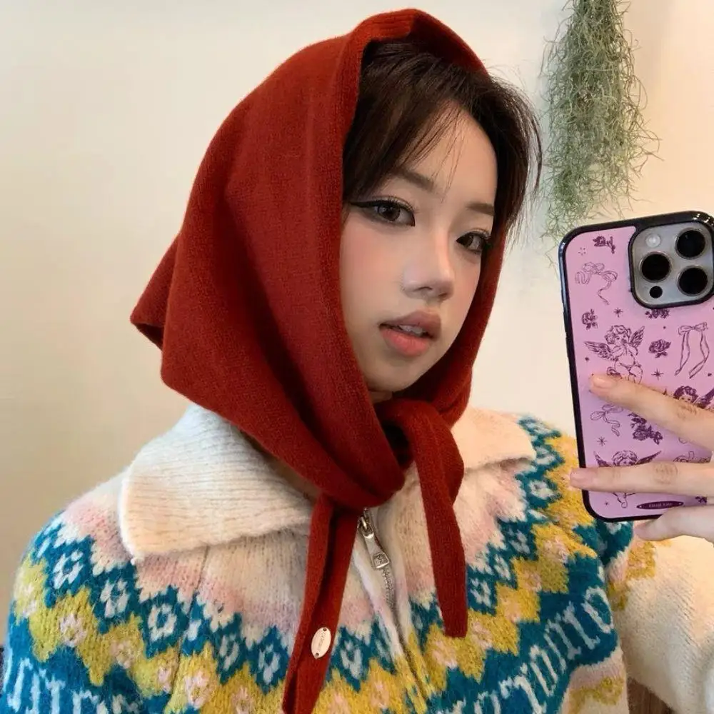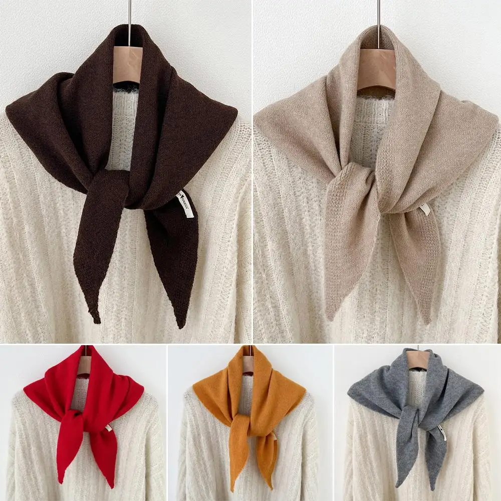 Triangle Knit Scarves Hijab Knitted Headscarf Solid Color Shoulder Shawl Multi-functional Neckerchief Fashion Simple DIY