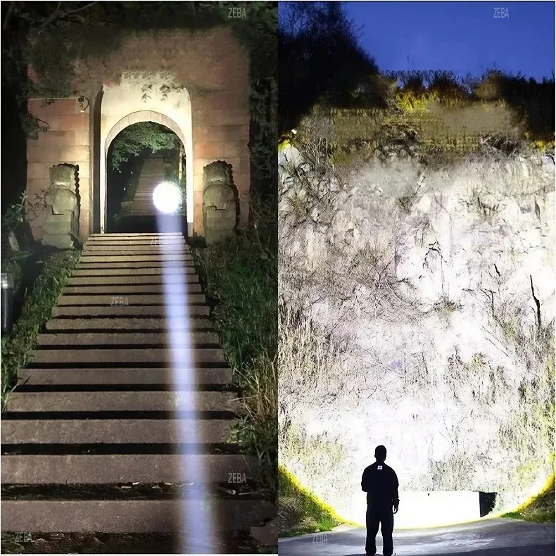 ✿ The super-bright headlight uses a 300W LED wick, which supports high-power output and is reflected through the lens, forming a highly concentrated and penetrating lighting light. The lighting distance is up to 2500M, and the tail warehouse has 5 LED white lights, which can be used for small-scale lighting.