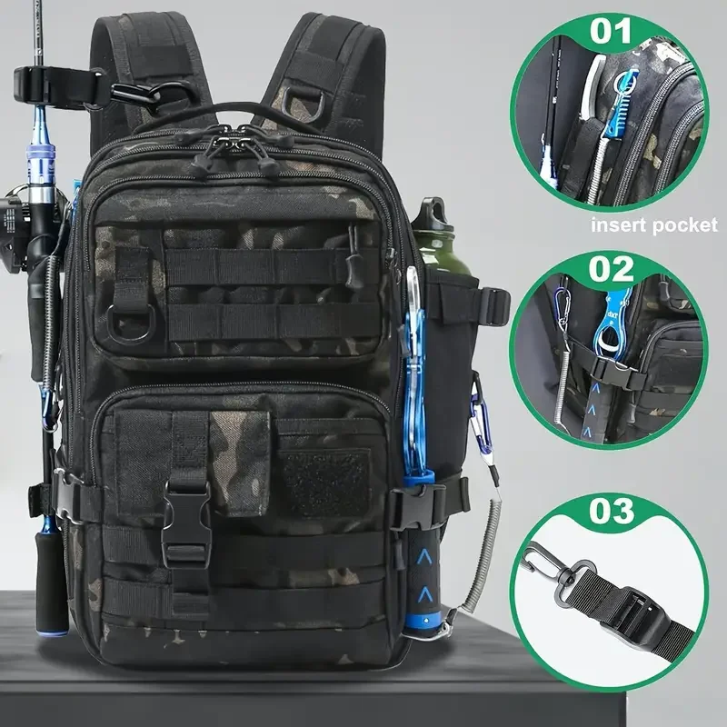 Durable Material:Crafted from resilient materials, the backpack withstands the rigors of outdoor use and fishing trips.