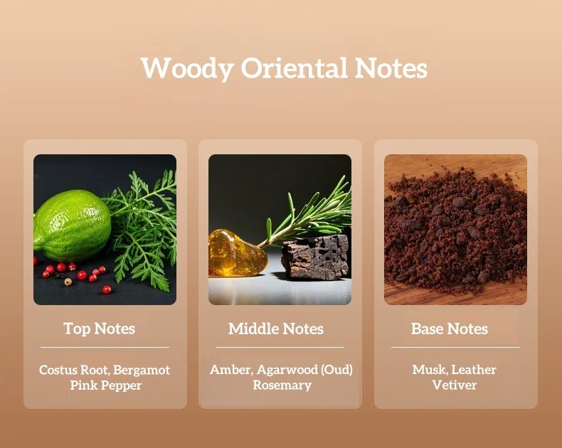 Middle Notes:Amber, Agarwood (Oud) Rosemary