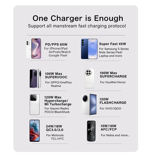 65W PD/PPS fast charger for iPhone/iPad/MacBook/Google and more