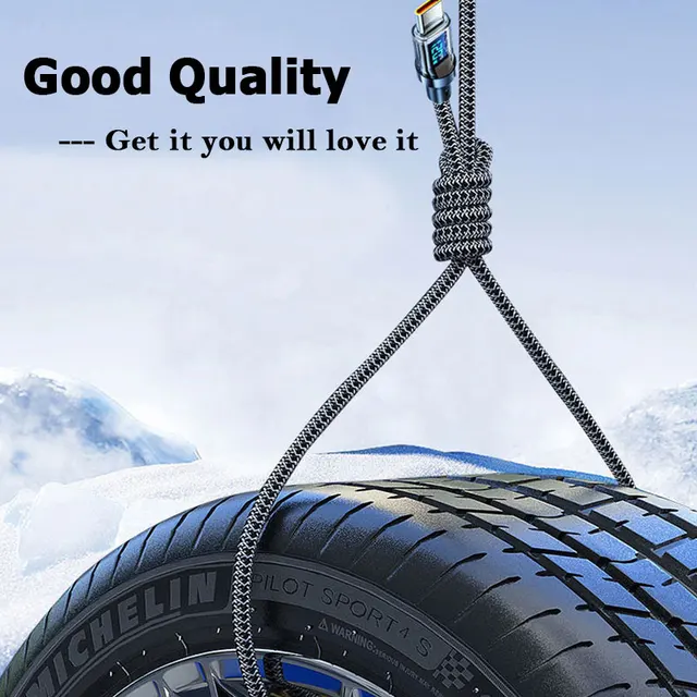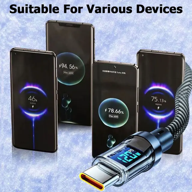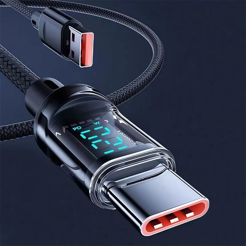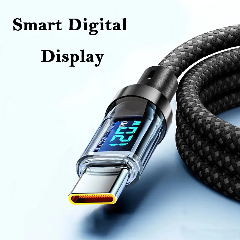 100W Type C To Type C Data Transfer Cable 120W USB A to Type C Fast Charge Cable with LED Display Cord for Xiaomi Samsung Huawei