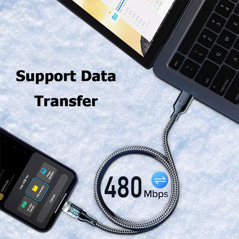 100W Type C To Type C Data Transfer Cable 120W USB A to Type C Fast Charge Cable with LED Display Cord