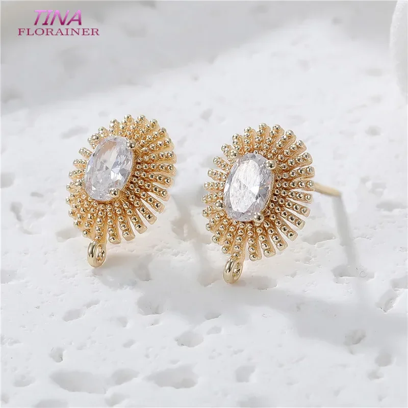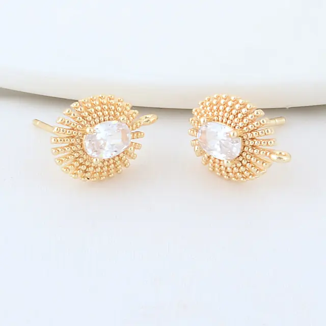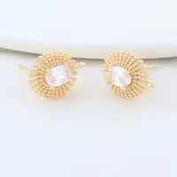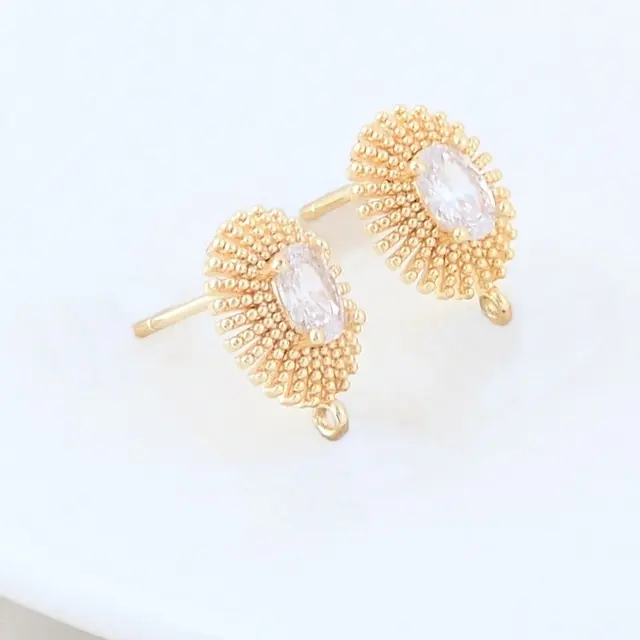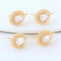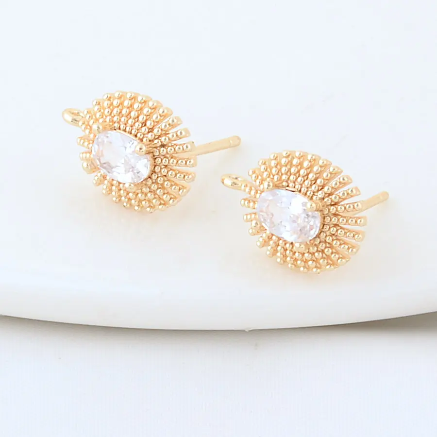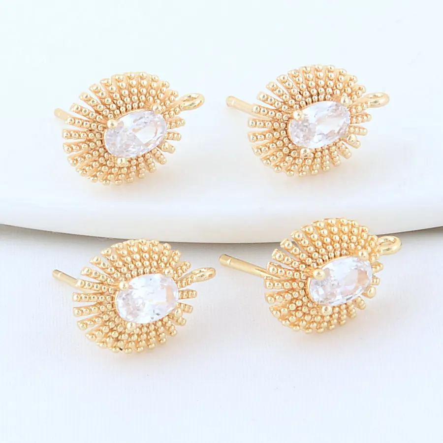 18K Gold Plated Brass Metal Polygon Earring Fixtures Earring Making Supplies Inlaid Zircon Earring Fixtures Jewelry Accessories