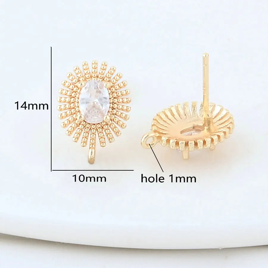 3*8.5MM 14K Gold Color Plated Brass with Zircon Drop Stud Earrings Pins High Quality Diy Jewelry Findings Accessories