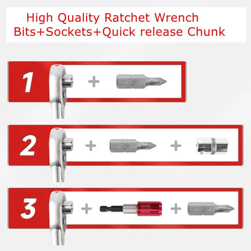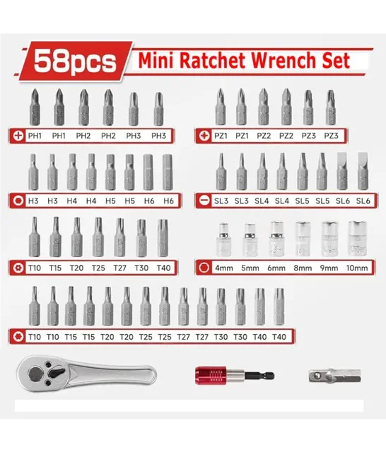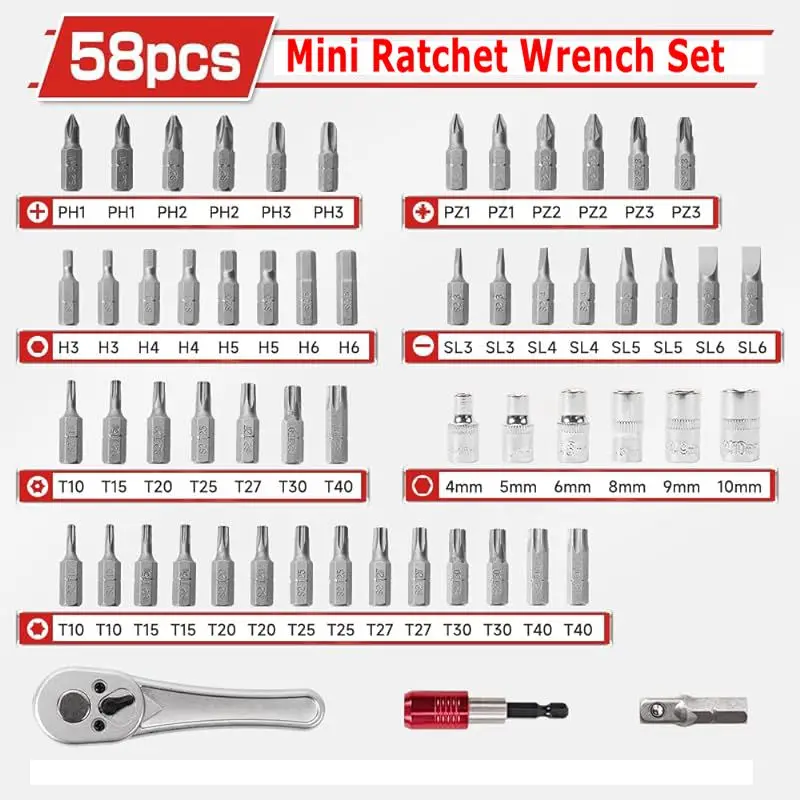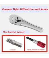 【Small Ratchet Set】A complete mini ratchet set to meet your daily needs. Screwdriver bits are made of S2 alloy steel, which is characterized by its high wear resistance. Suitable for repairing bicycles, furniture, and appliances, also a small tool helper for children to exercise their hands-on ability for repairing toys, small cars, etc