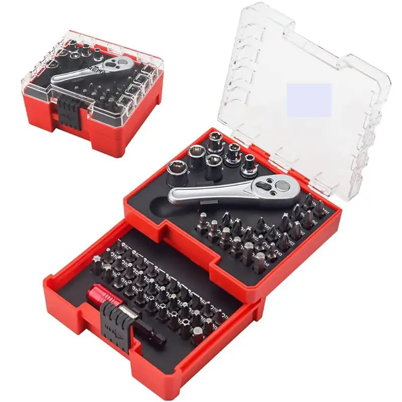 102 Pieces Multifunctional CR-V Drive S2 Steel Bits Socket Set - Precision Screwdriver Kit with Ratchet Wrench W/ Red Case