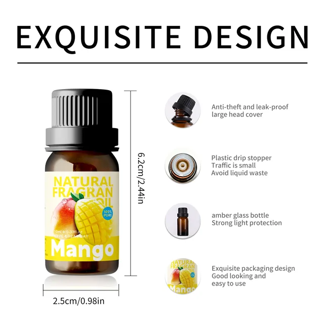 Suitable for aromatherapy oils, diffuser oils, humidifier oils, oil burners, perfume,spas,air purifiers and anything else that needs to be scented.