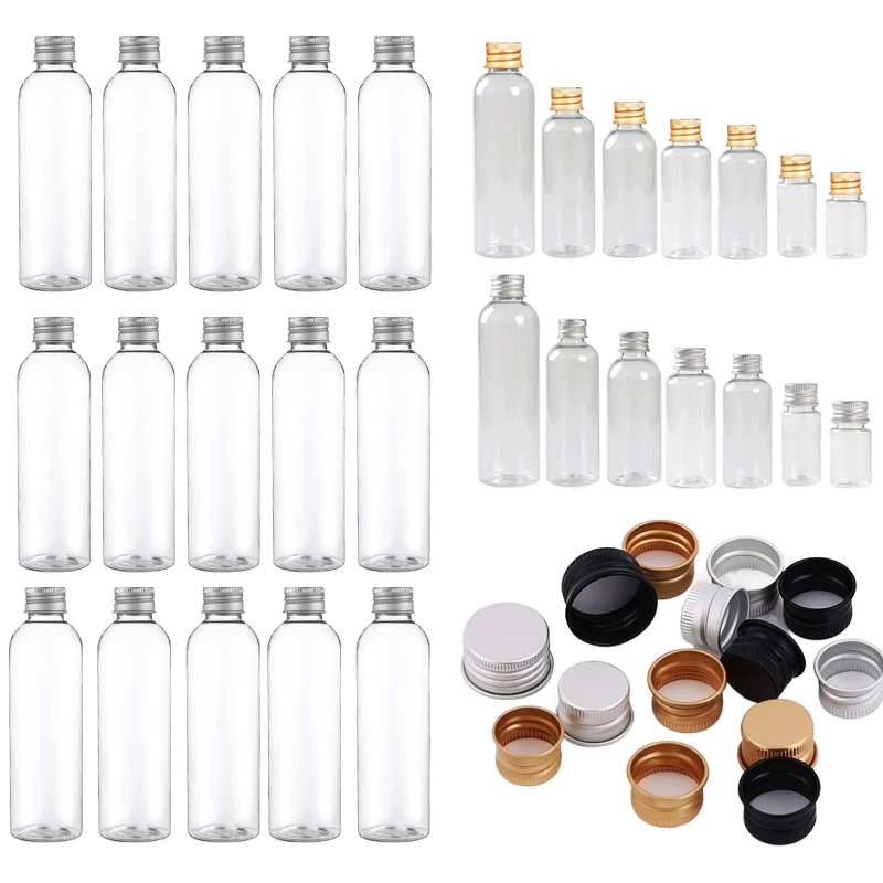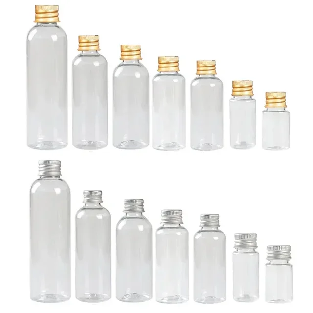 10Pcs 5ml-250ML Mini Plastic Bottle w/ Aluminum Screw Caps Portable Sample Vials Travel Cosmetic Containers
