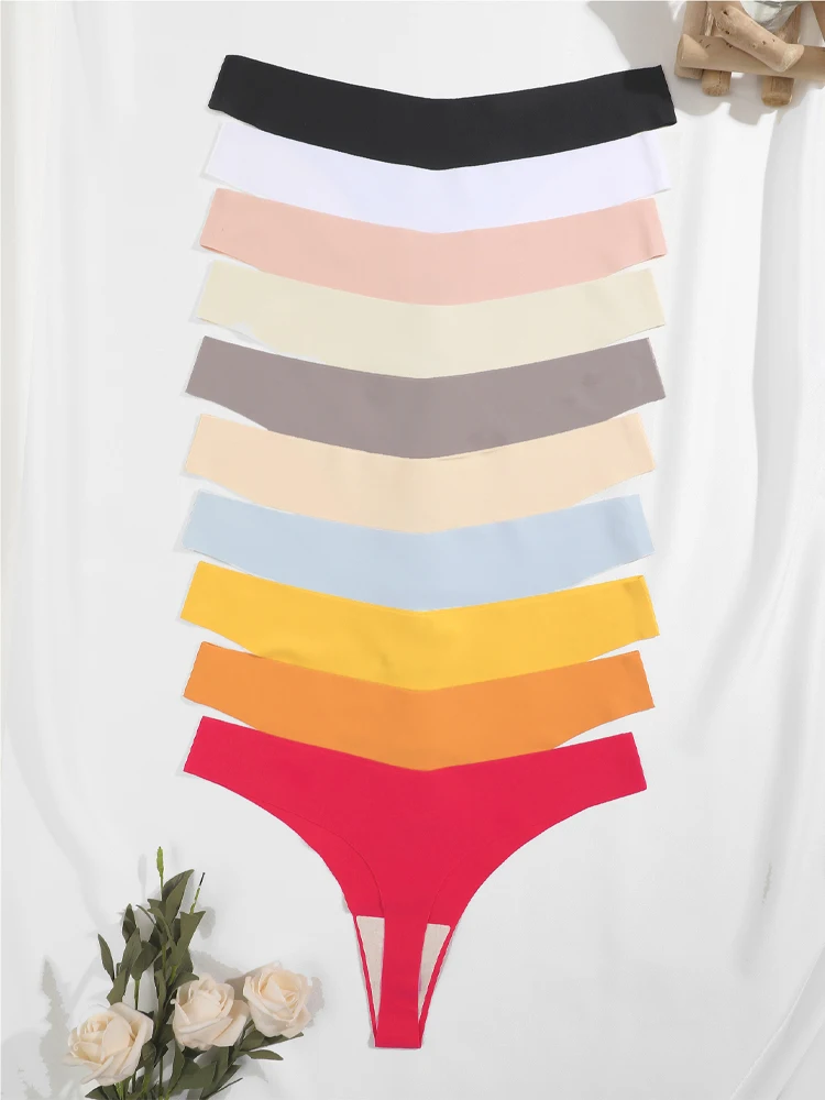 FallSweet 5PCS/set Women Underwear Seamless High Waist Panties Solid Ice Silk Briefs Comfortable Underpants Sexy Female Lingerie