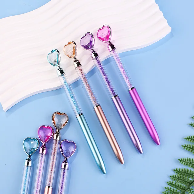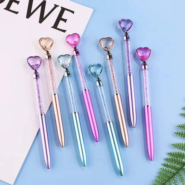 10Pcs/Lot Cute Love Heart Diamond Ballpoint Pen Colorful Crystal Gem Rotating Gel Pens Student School