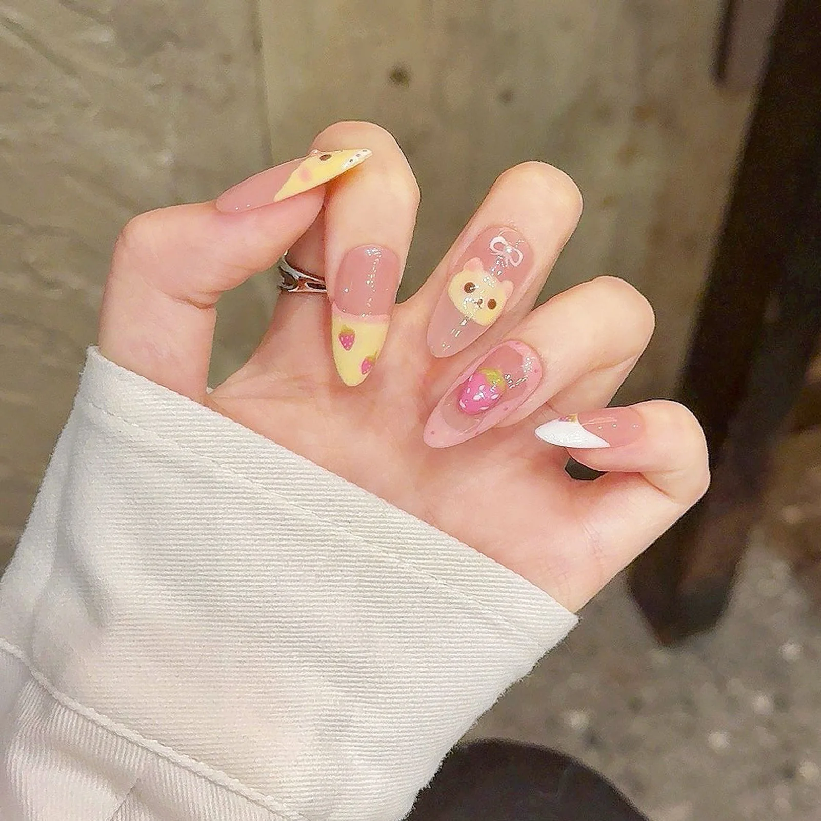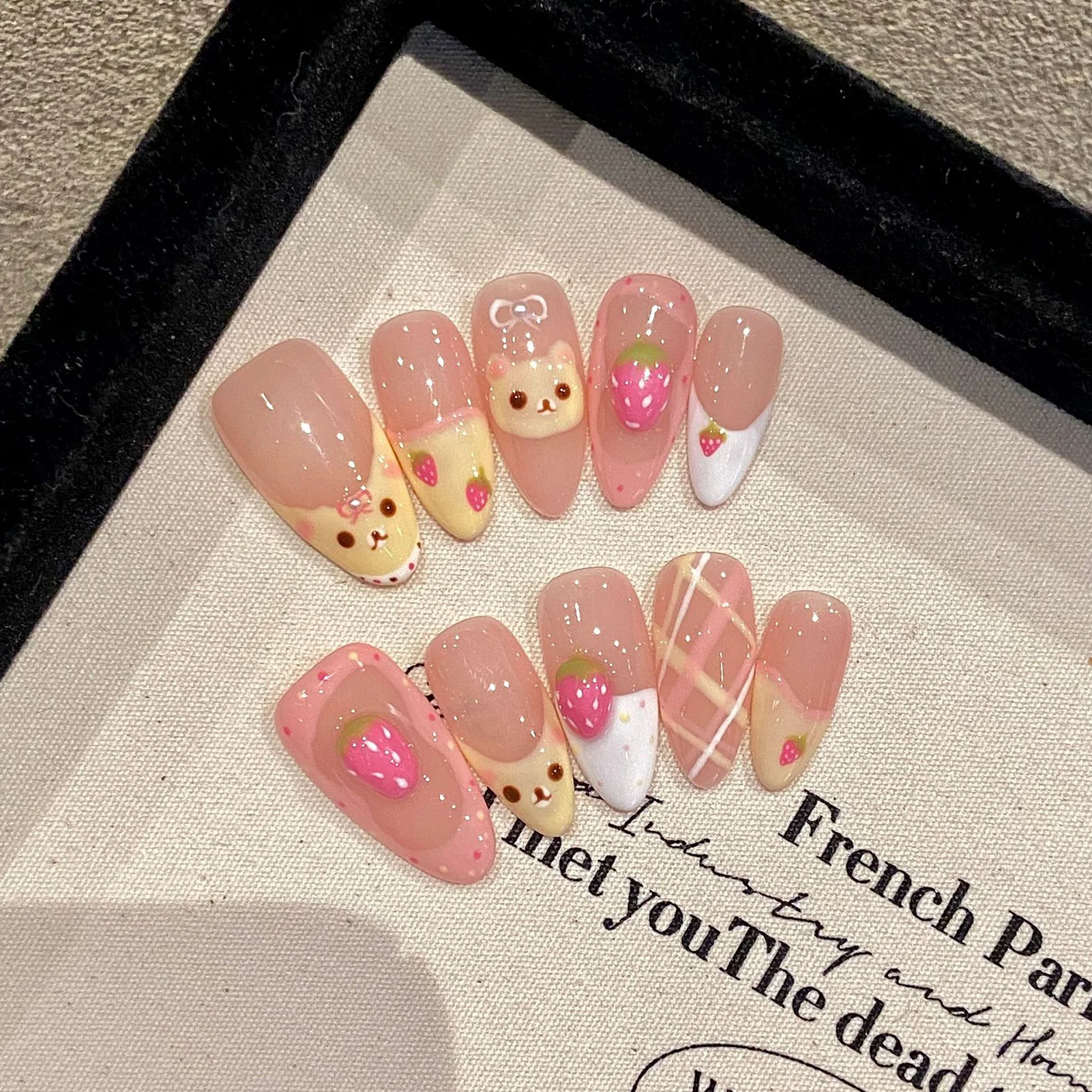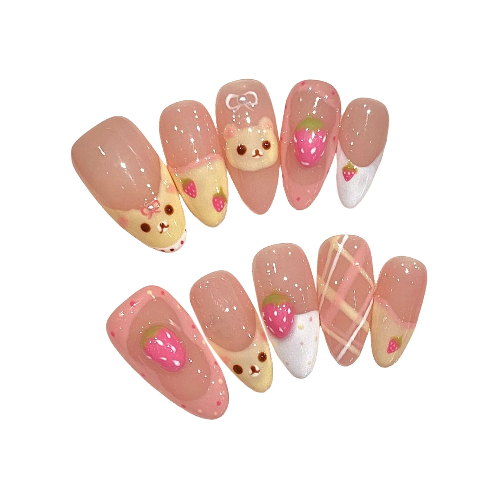 Cute Cartoon Bear Design: Elevate your nail game with our adorable cartoon bear press on nails, featuring a fun and playful design that will make your nails stand out.