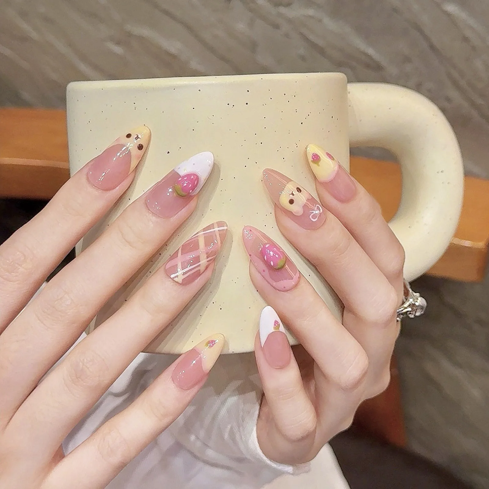 Versatile Oval Tip Shape: The oval tip pink sweet style false nails come in a versatile oval shape that flatters all nail sizes and shapes, providing a comfortable and natural fit.