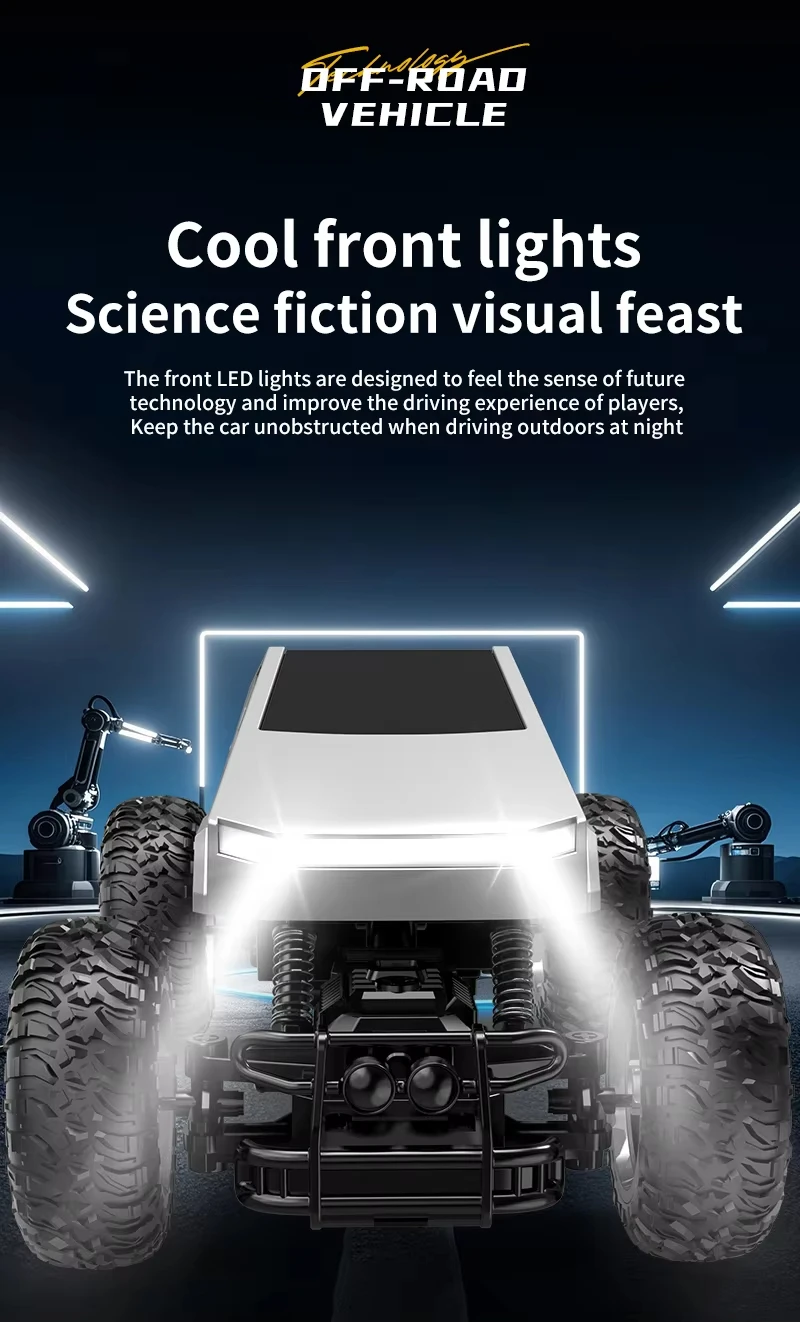 Futuristic & Durable Design: A striking, angular body made from collision-resistant materials, built to withstand tumbles and rough play.