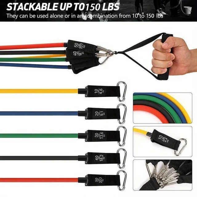 11Pcs Resistance Bands Set Bodybuilding Exercise Equipment Fitness Elastic Rope Strength Training Tensioner Workout Expander