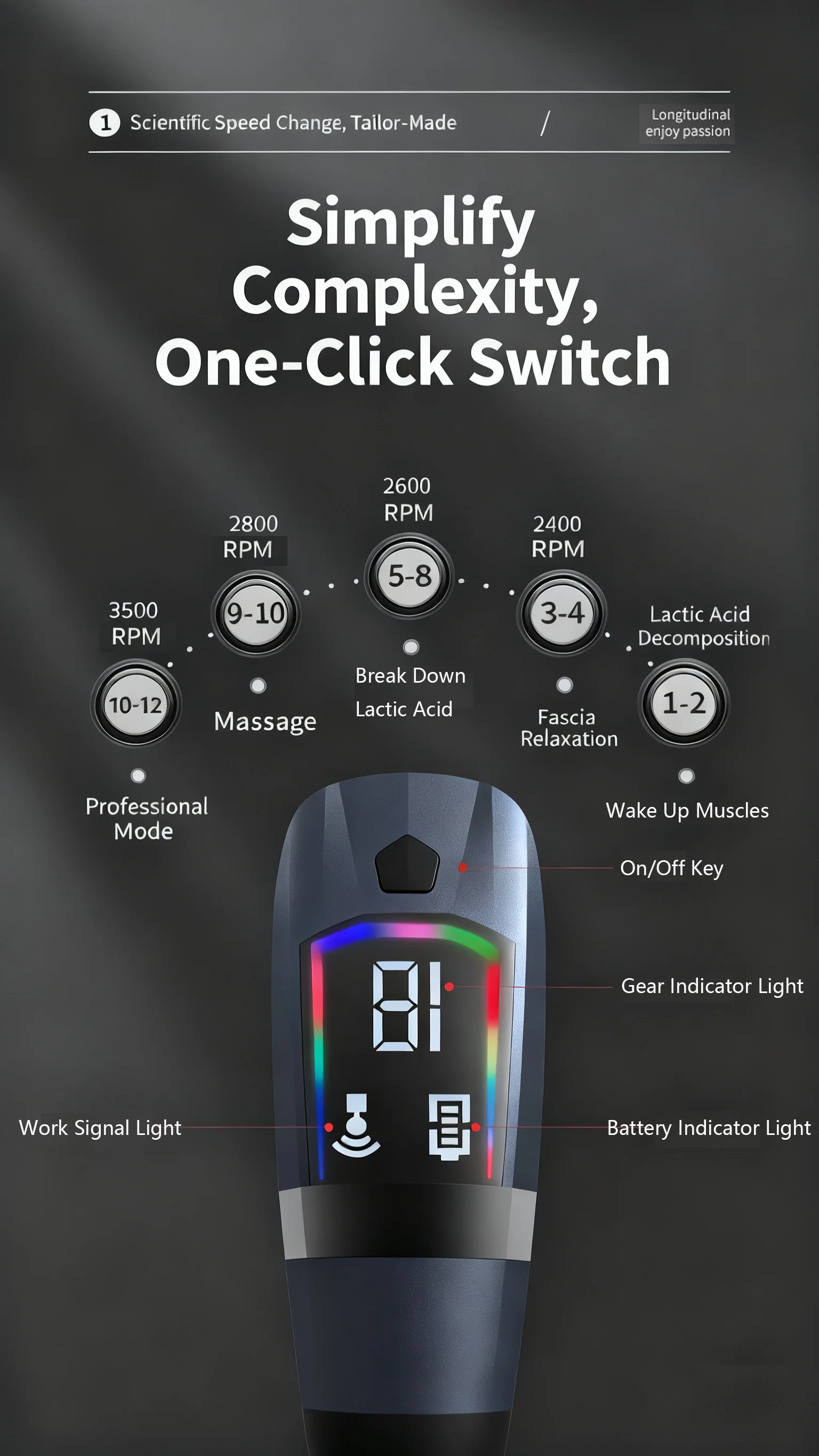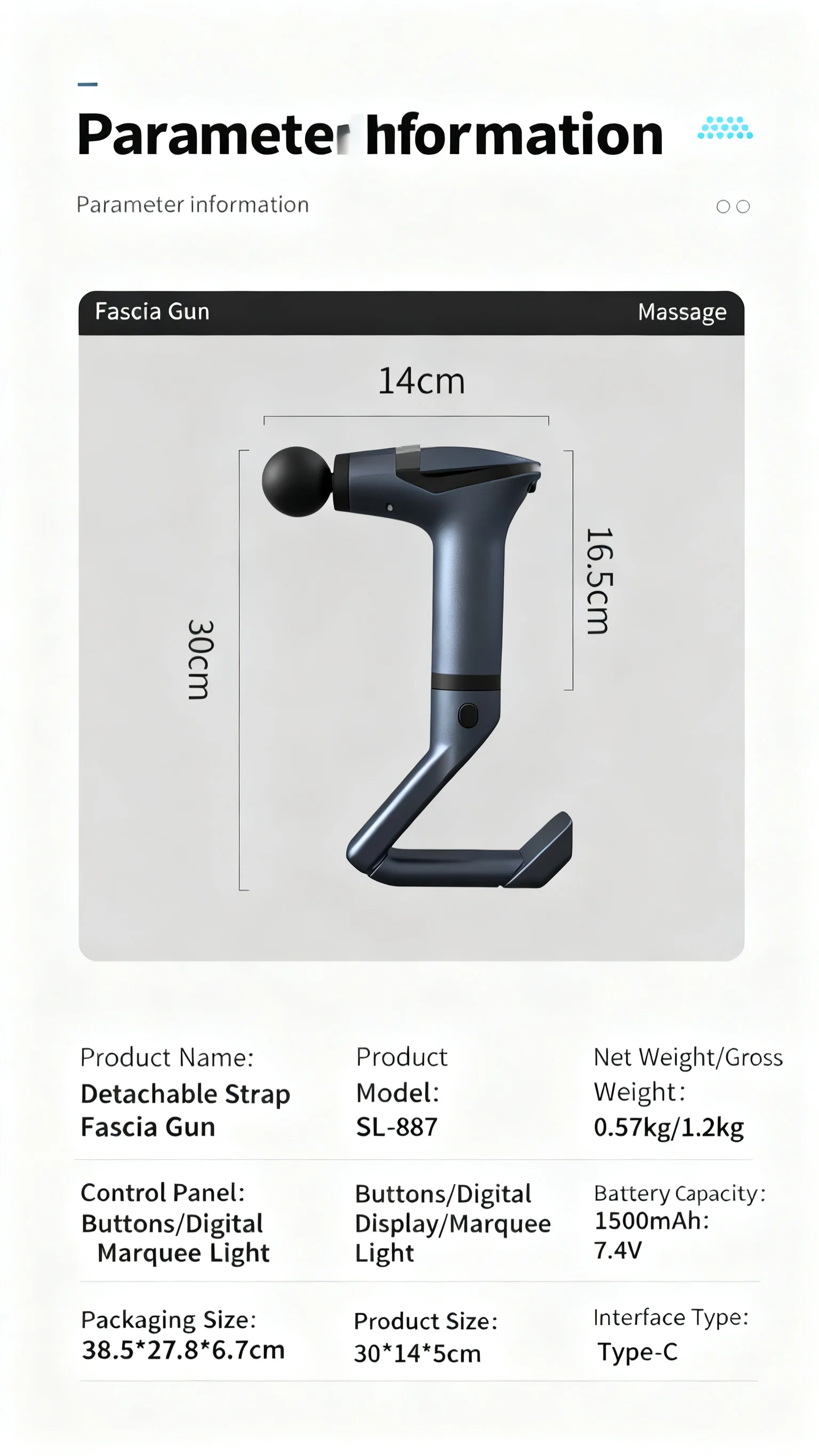 Equipped with a detachable strap, it enables easy self – massage, helping to quickly eliminate lactic acid and keep you feeling refreshed all day. Operation is simple with scientific speed settings and a one – click switch. You can select from multiple gears, ranging from waking up muscles to professional massage mode, to meet your specific needs.