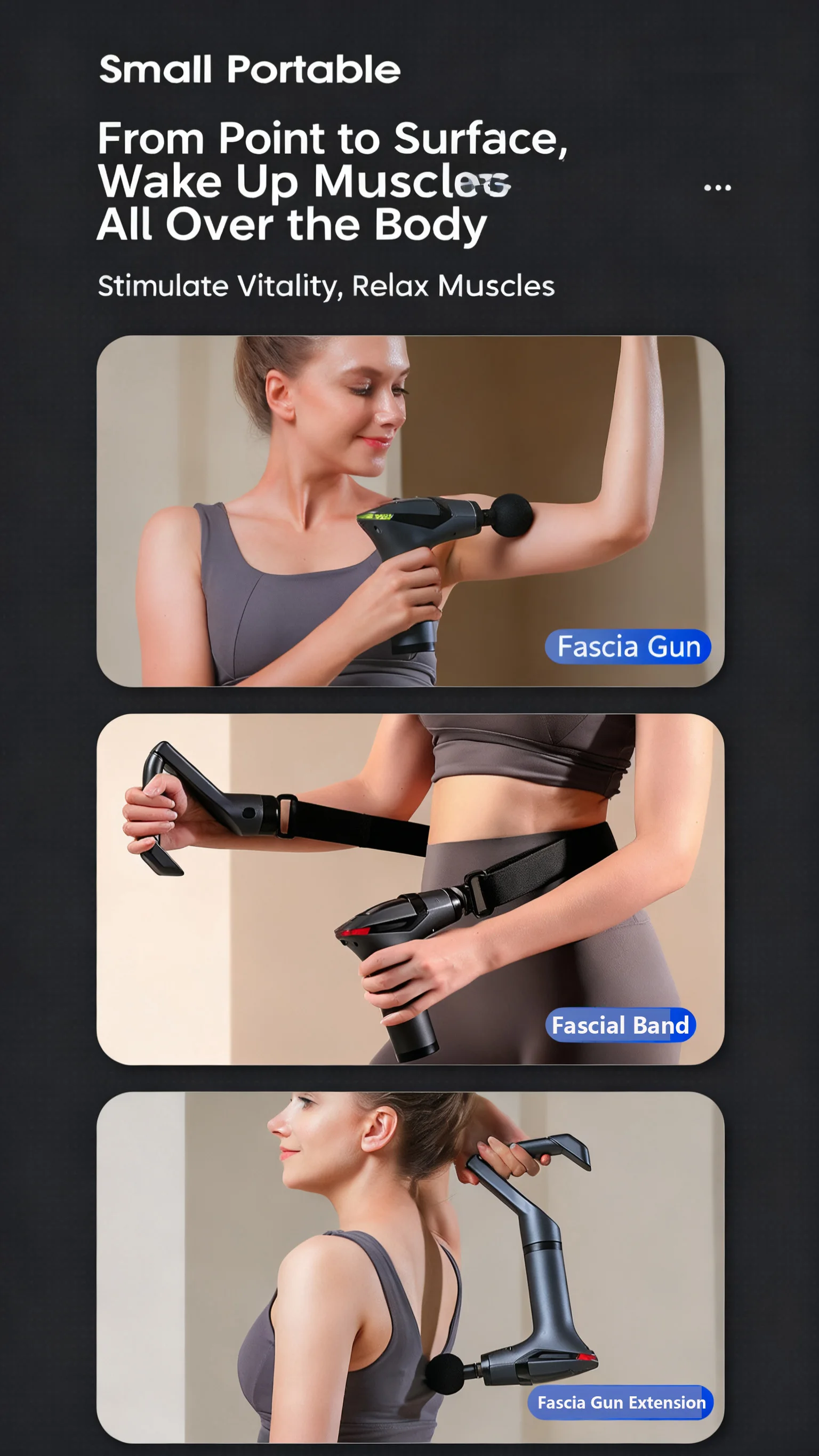 Introducing our 3 – in – 1 Full Body Massage Fascia Gun, the ultimate answer for muscle relaxation and revitalization.