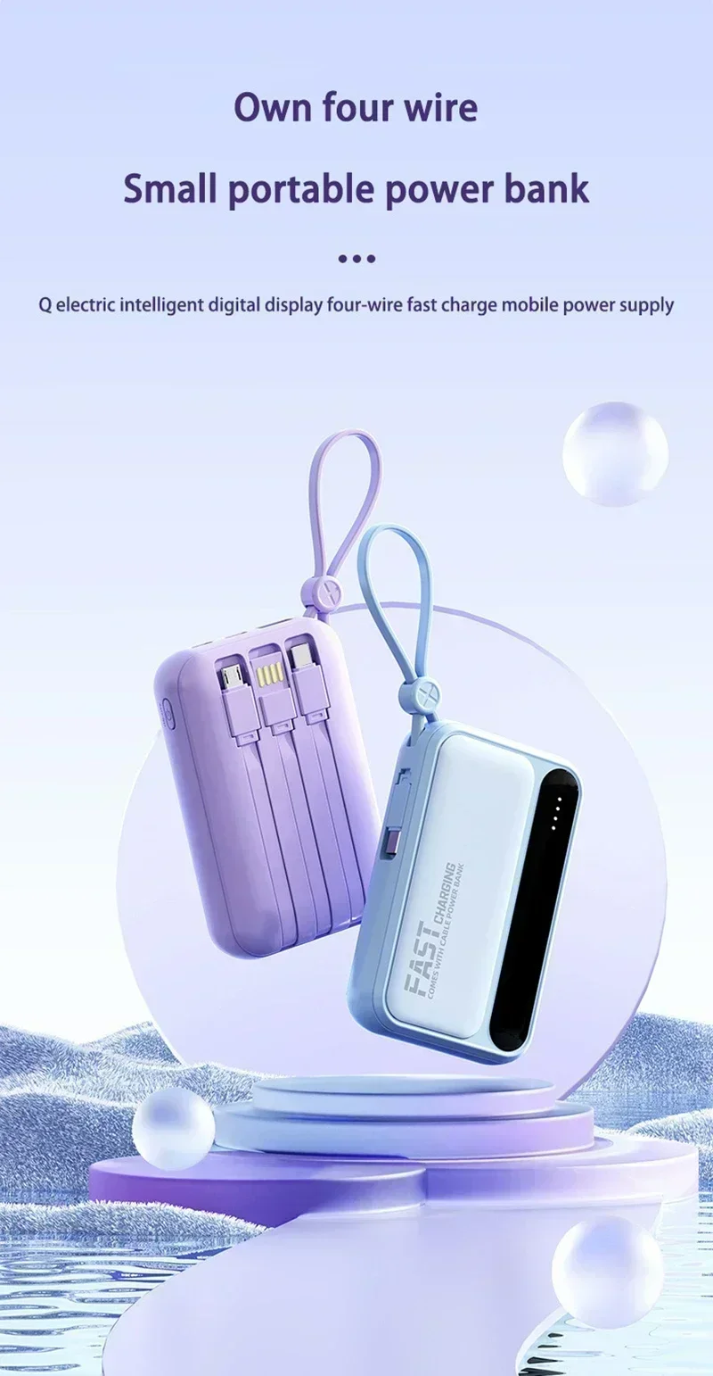 New 500000mAh Power Bank Large Capacity 4 In1 Cables Intelligent Digital Display Light Portable Powerbank For iPhone Huawei