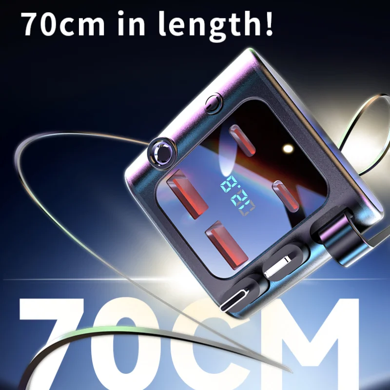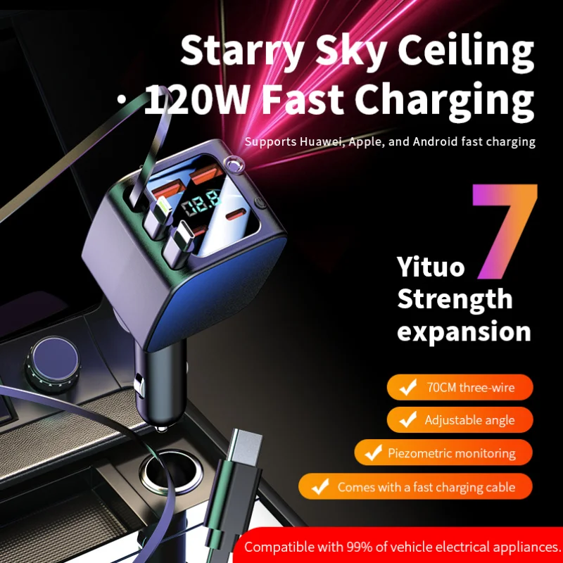 PD+USB Type C Car Fast Charger with 2 Retractable Cables Phone Charger LED Dispaly 5-in-1 Car Charger for IPhone IPad