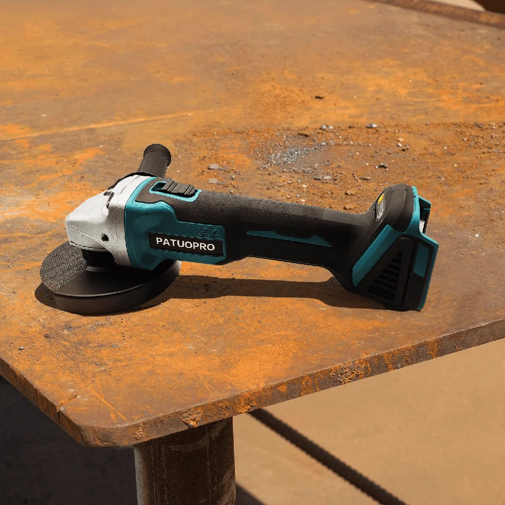 3.【Lightweight Design】 To reduce working fatigue, the body weight of the angle grinder is only 1.7kg without the battery. The switch is set in the middle of the top, so that the user can turn the machine on and off quickly and easily, no matter whether they are left or right handy.