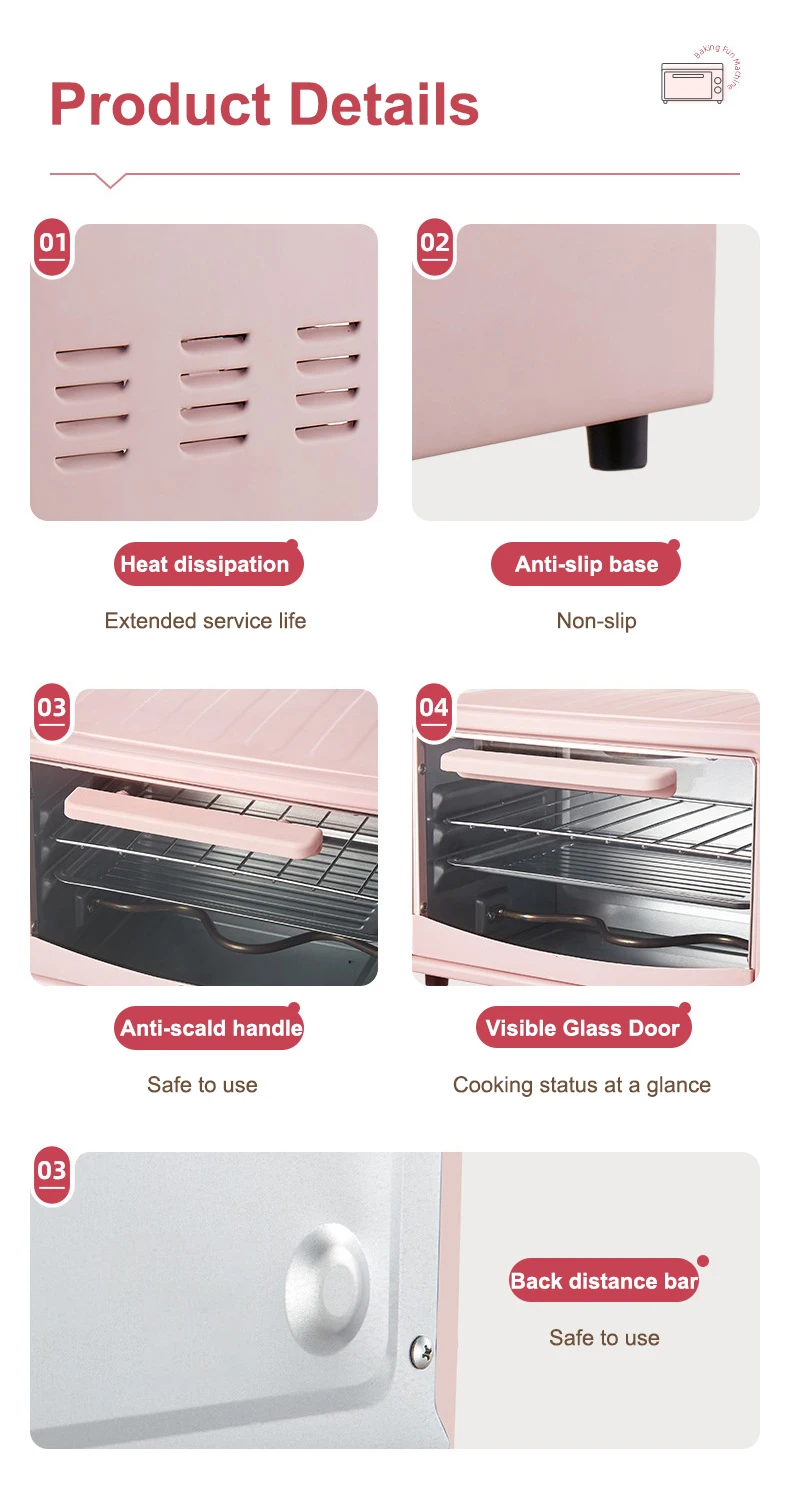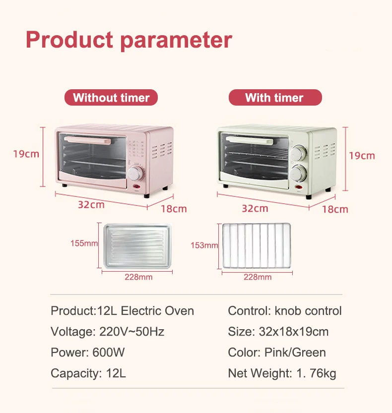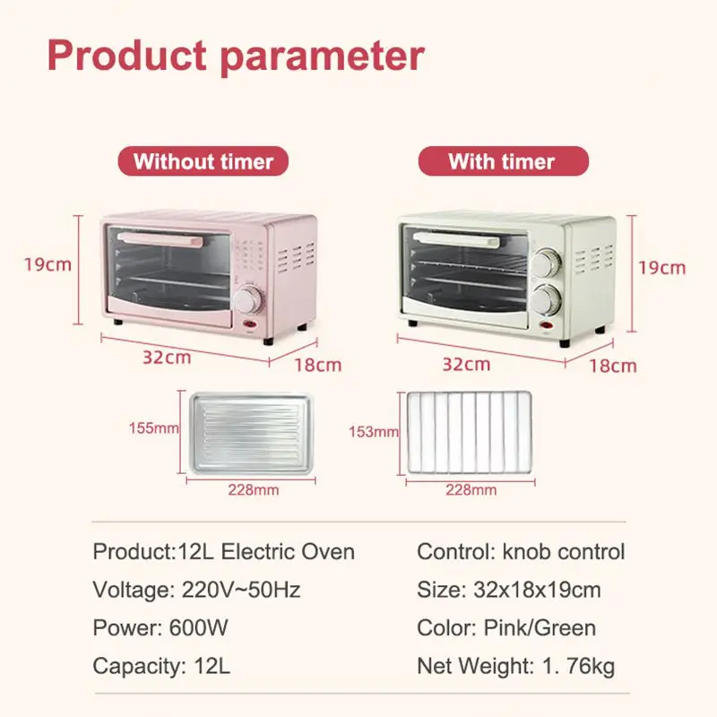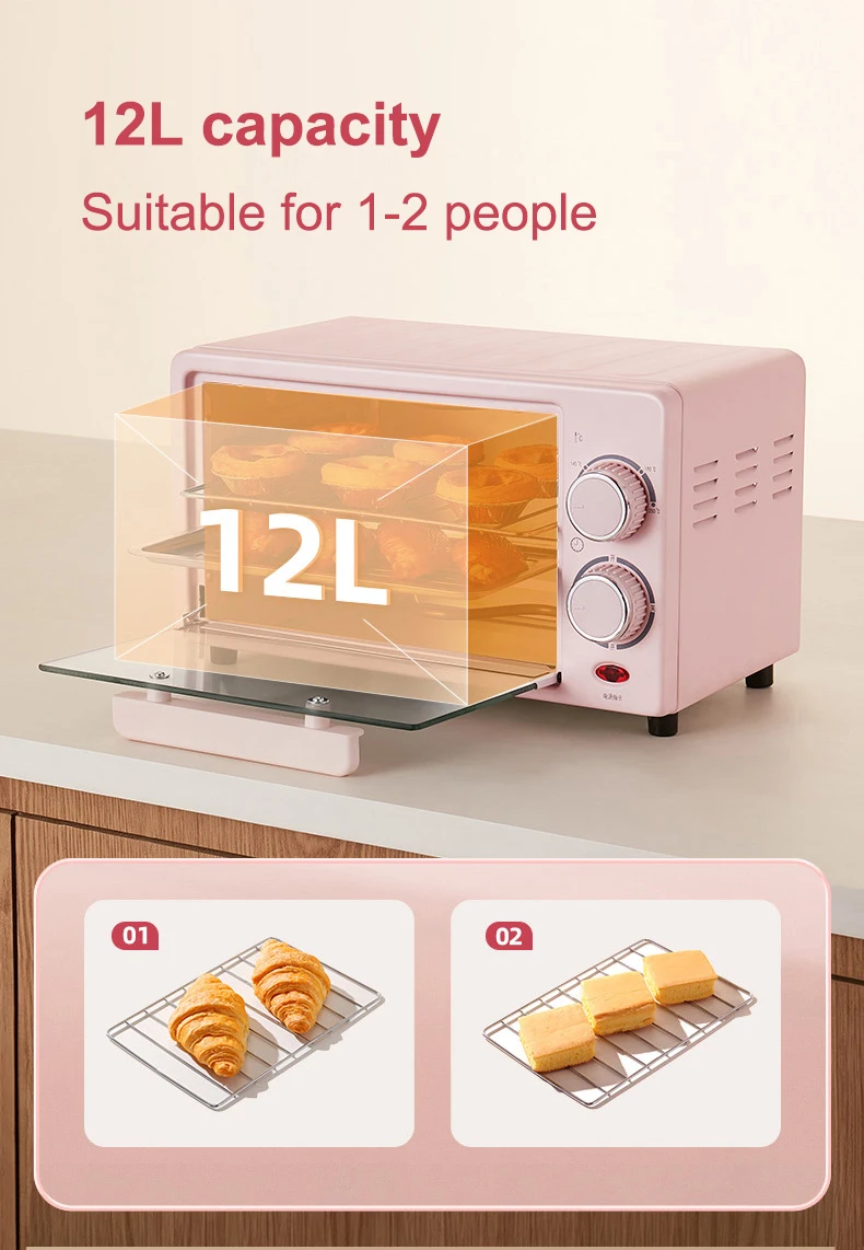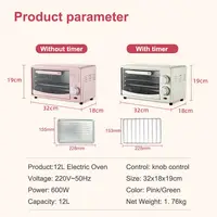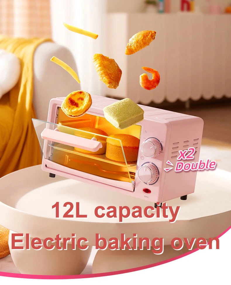 12L Mini Electric Oven Chicken Hams Roaster Cake Bread Toast Baker Multi-functional Baking Griddle Temperature adjustable Timed