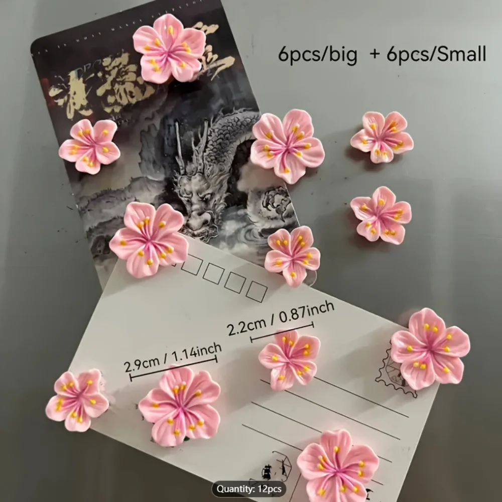 12Pcs Cute Flower Refrigerator Sticker Magnetic Sticker Three-dimensional Home Decoration Magnetic Sticker Pink Peach Blossom