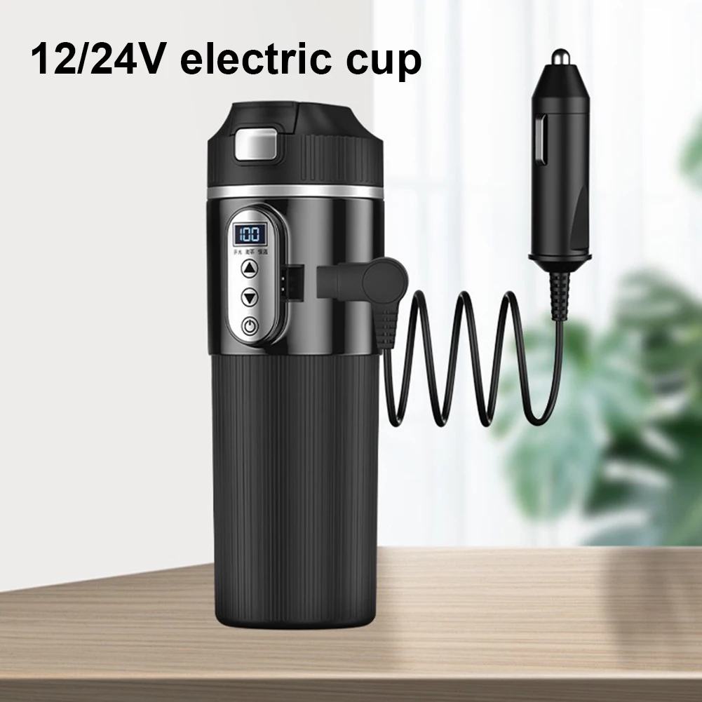 12V/24V Stainless Steel Thermos Cup Car Heating Cup LCD Display Water Warmer Bottle Smart Temperature