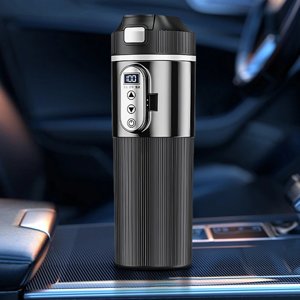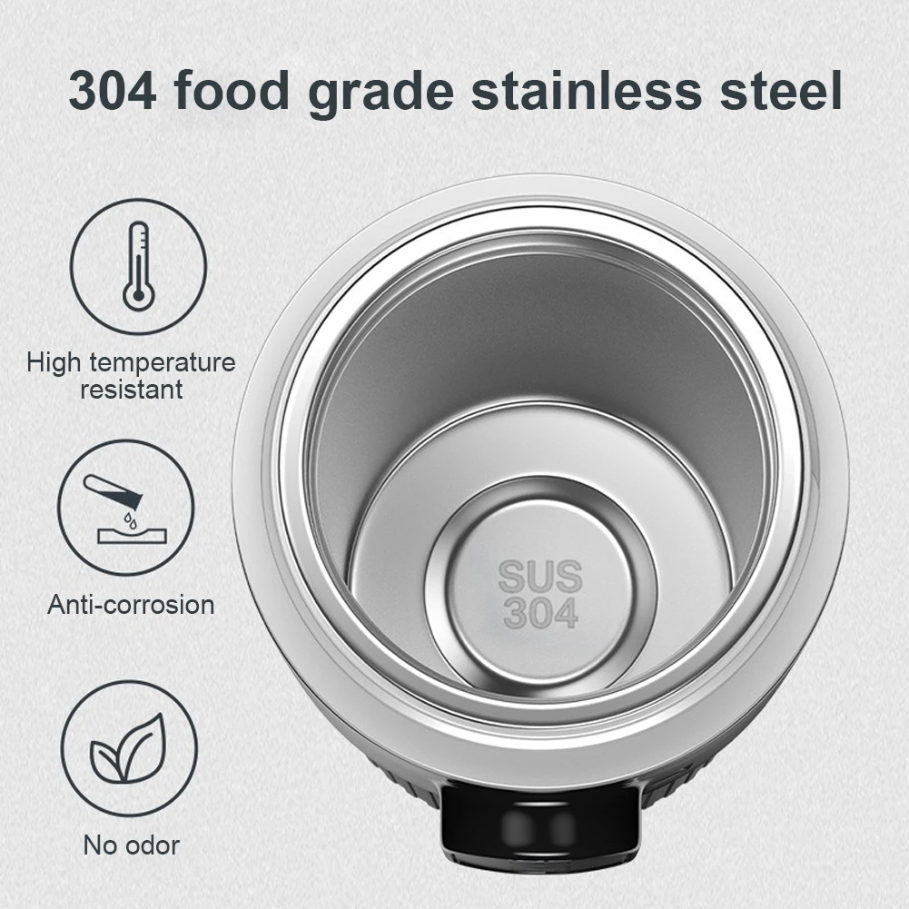 Smart Portable Vehicle Heated Mug 304 Stainless Steel Inner Pot 500ML Large Volume Temperature Keeping & Dry-Burn Prevention