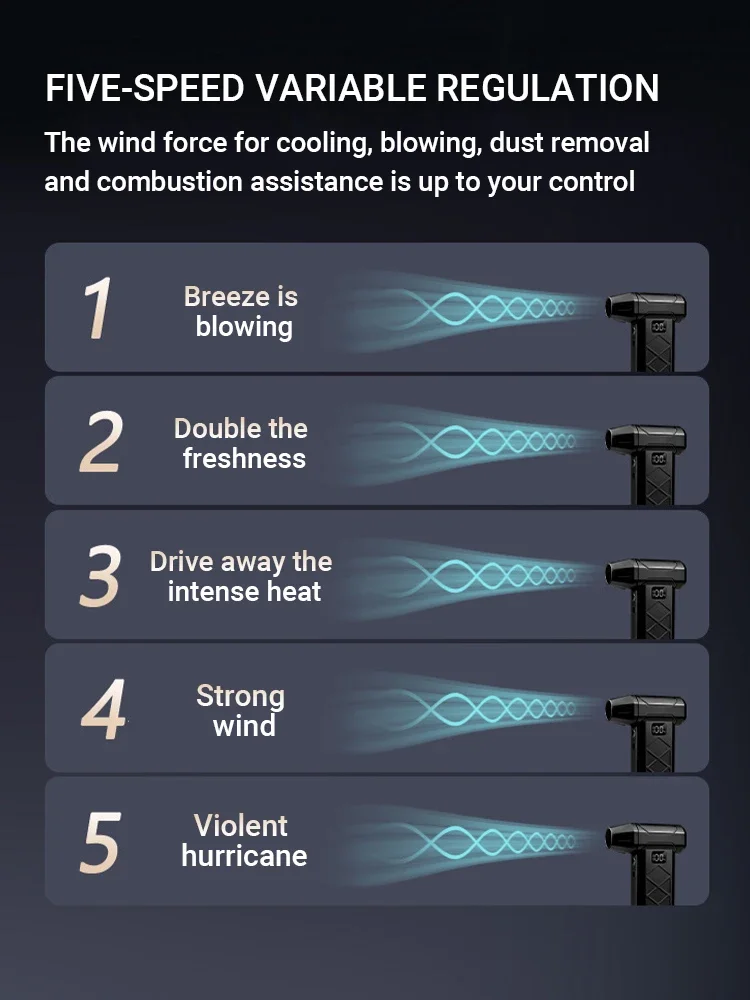 4.Wide Usage:Air cushion blowing and suction, computer equipment cleaning, industrial dust blowing, charcoal burning to support combustion, car blowing and snow blowing, film studio shooting and wind making, drying pets, and many other uses.