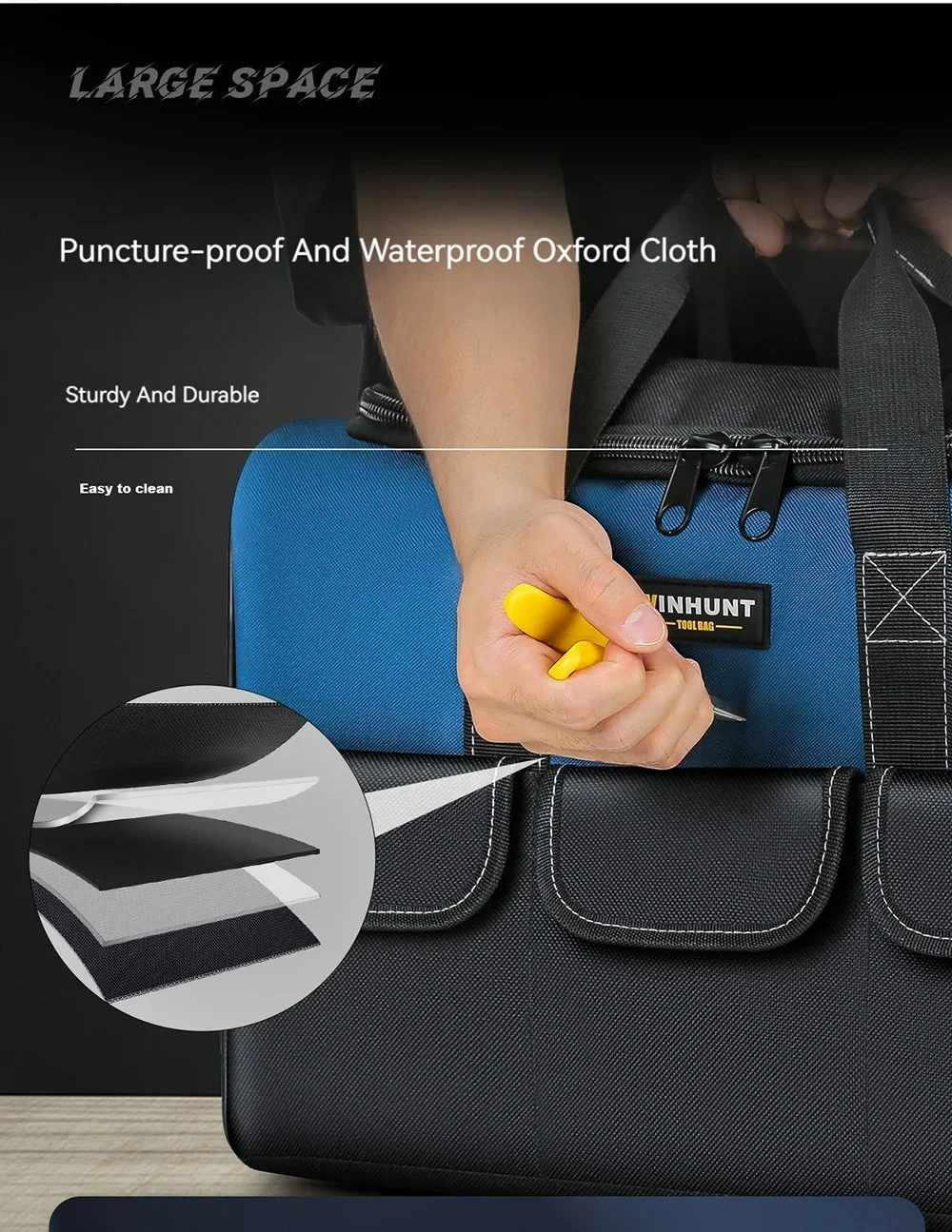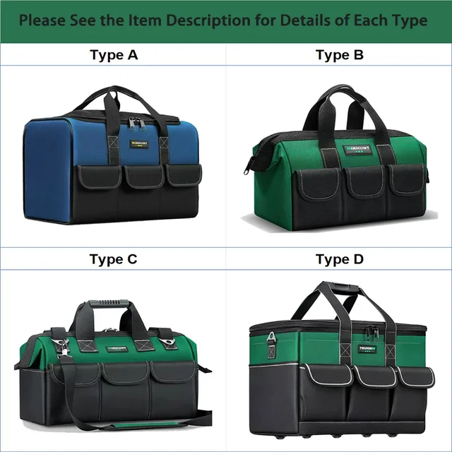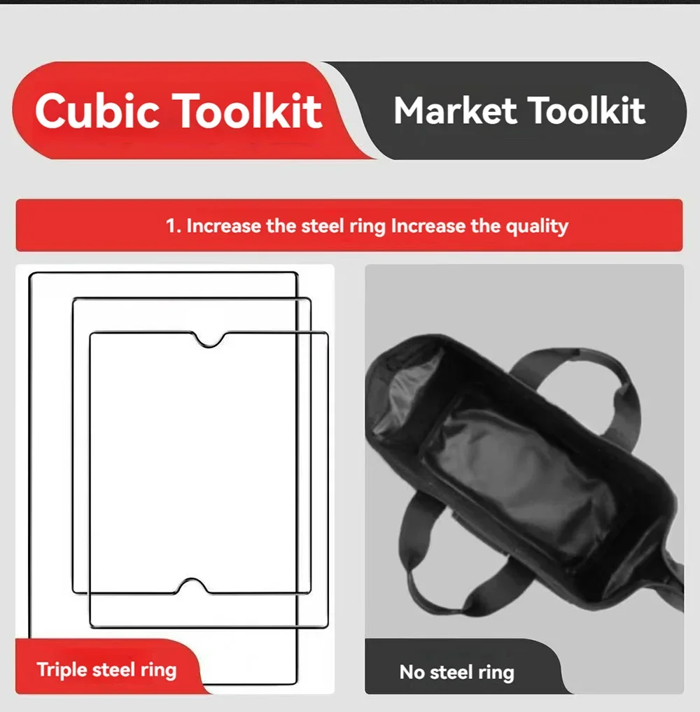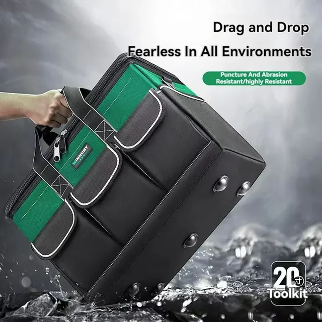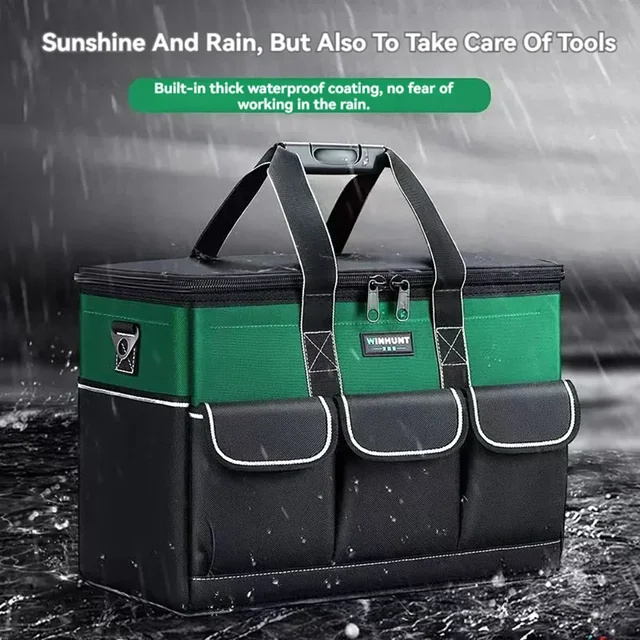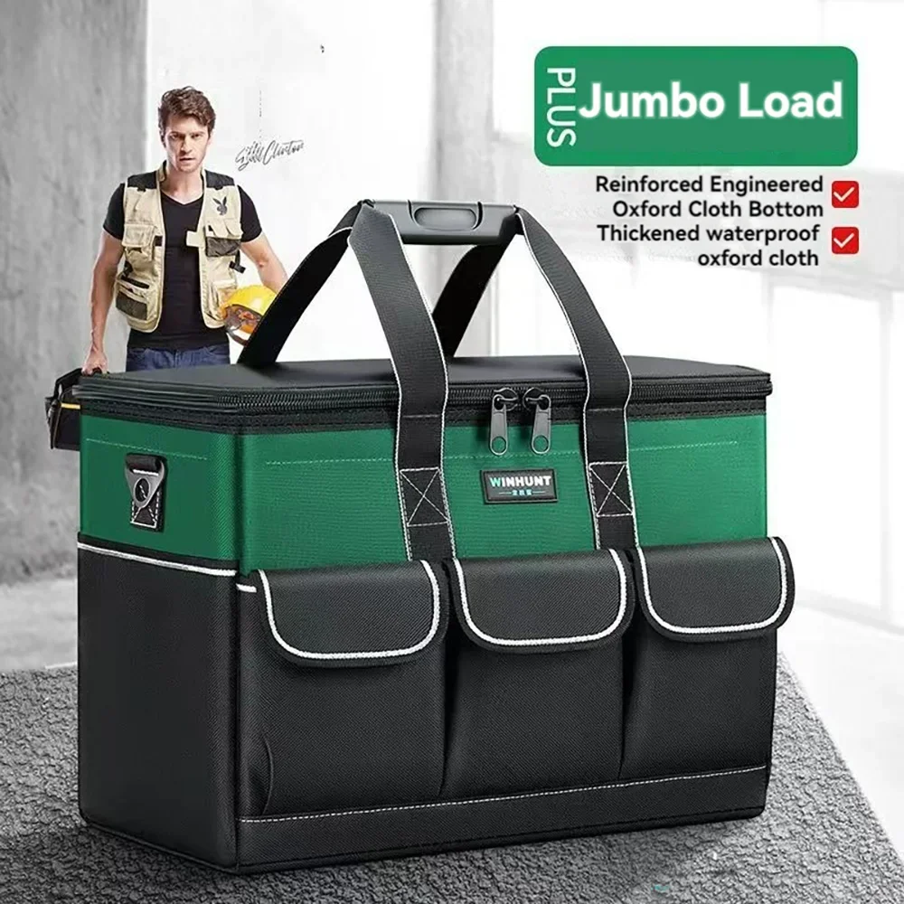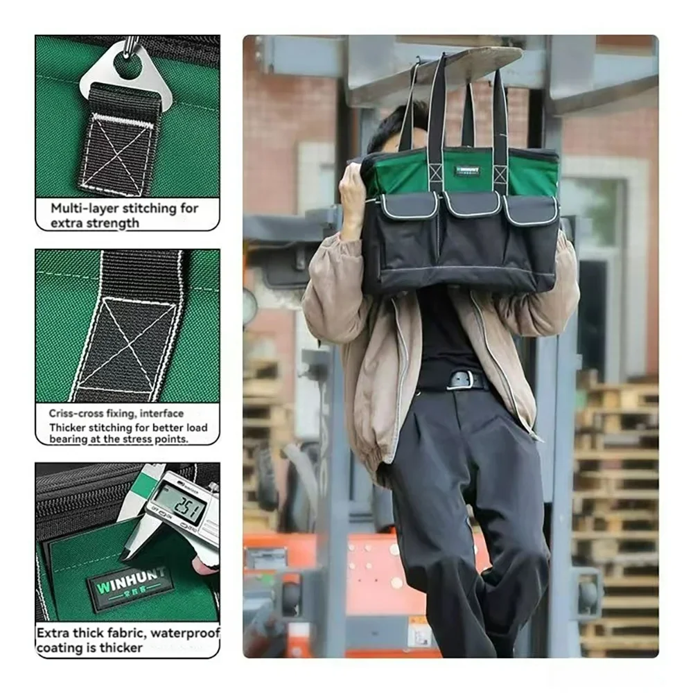 1680D Waterproof Tool Bag Oxford Cloth Handheld Wear Resistant Toolkit Portable for Electrician Carpenter Repair Installation