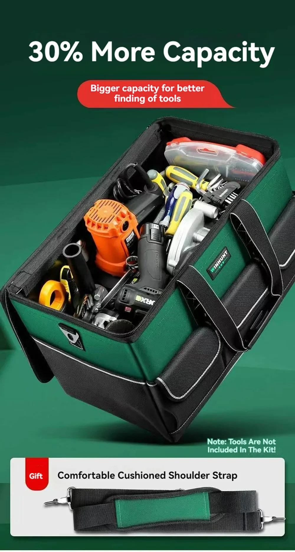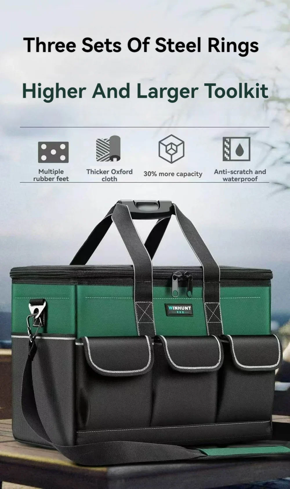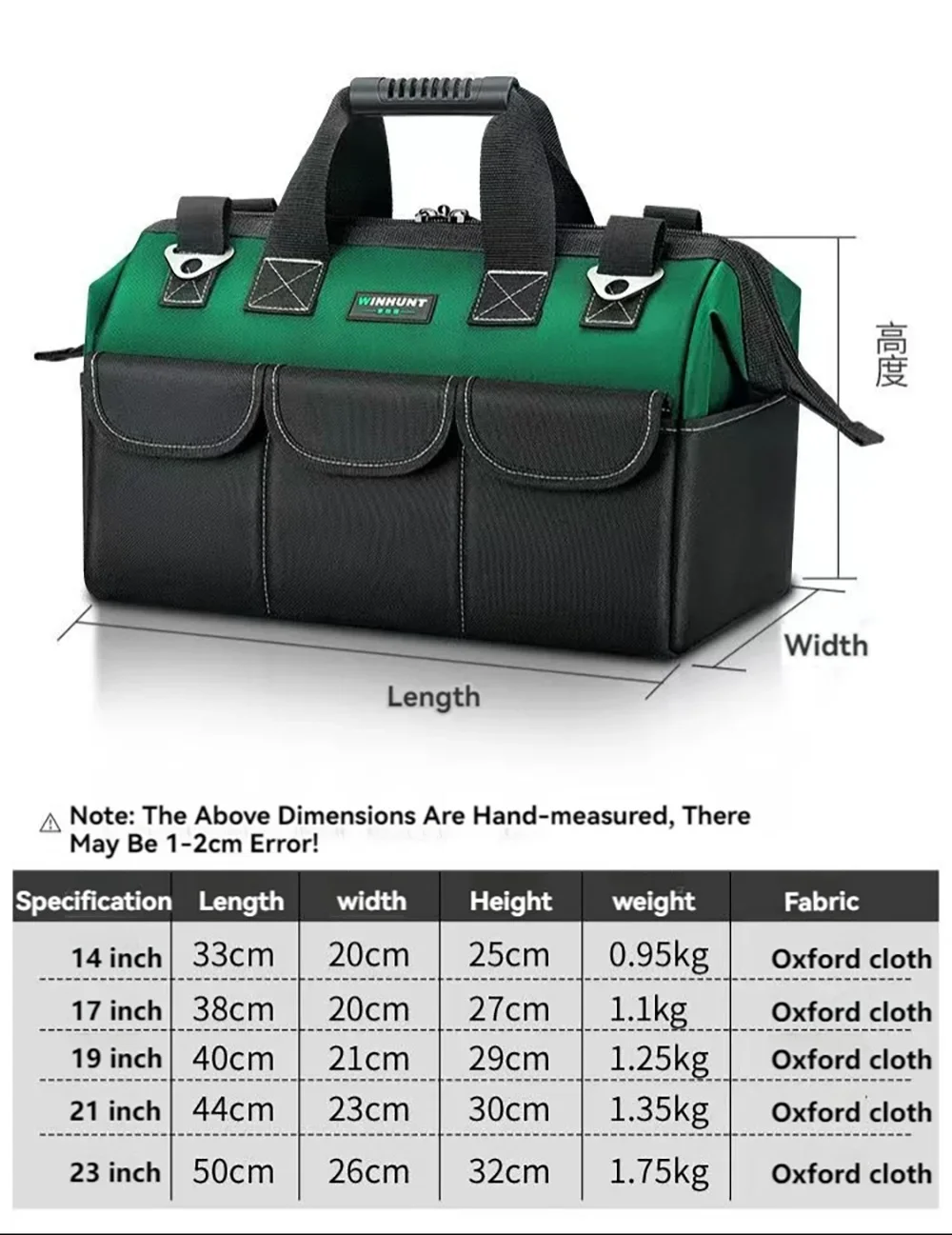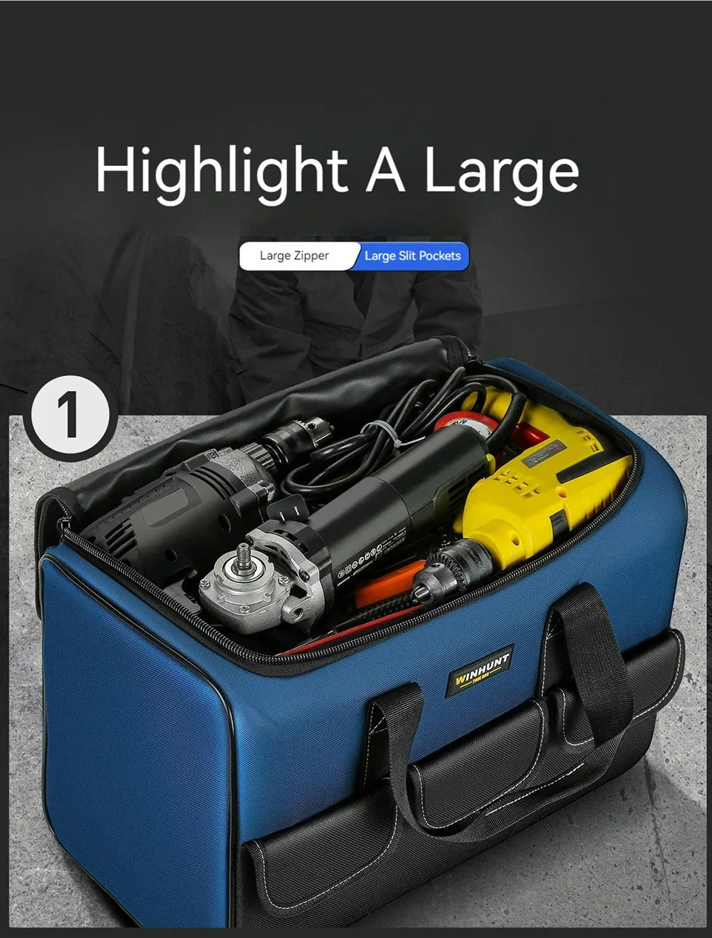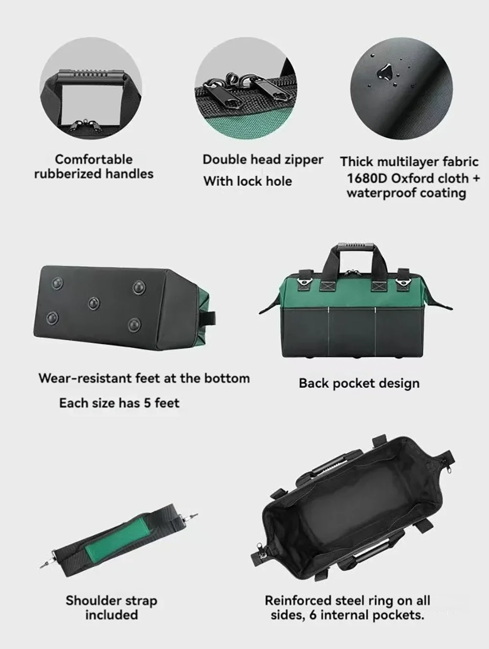 1680D Waterproof Tool Bag Oxford Cloth Handheld Wear Resistant Toolkit Portable for Electrician Carpenter Repair Installation