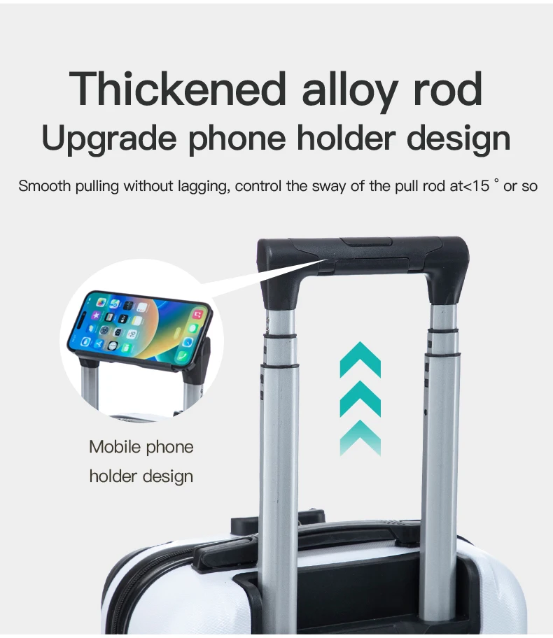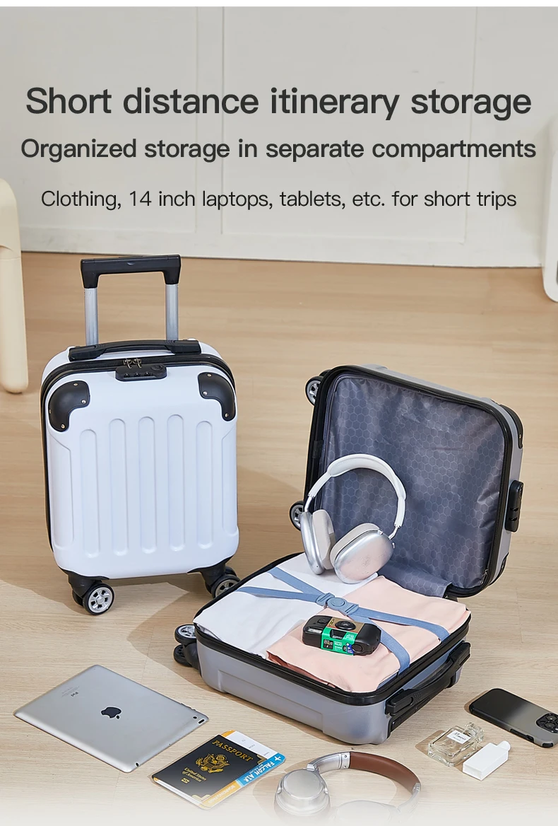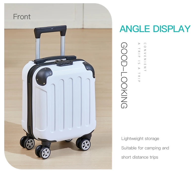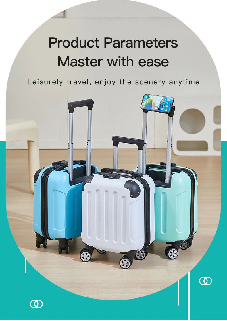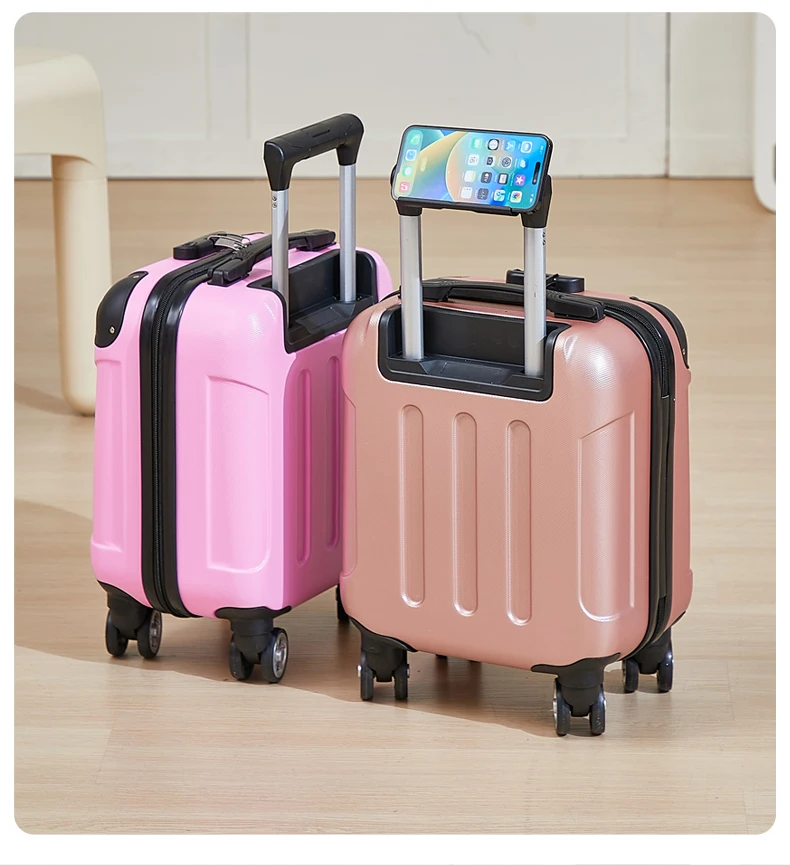 14 inch suitcase with phone holder for easy carrying during travel 360 degree roller suitcase for business