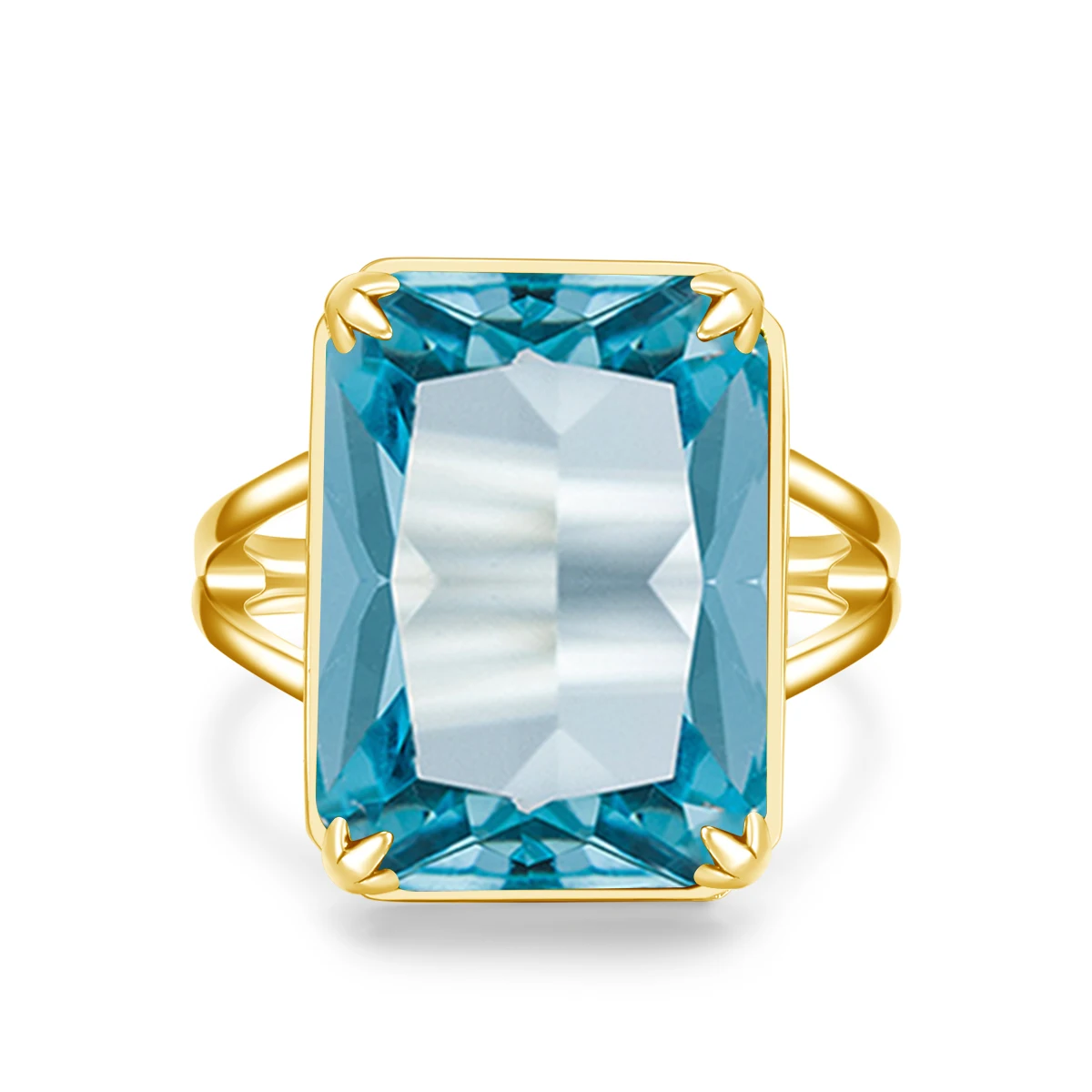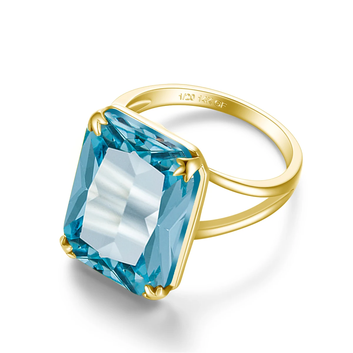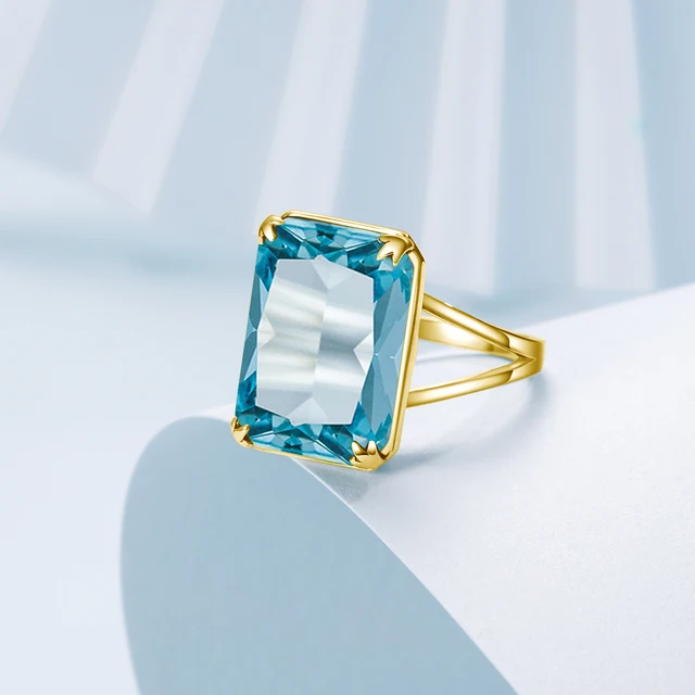 14K Gold Filled Aquamarine Gemstone Ring For Women Hyperbole Big Rectangular Sky Blue Birthstone Rings