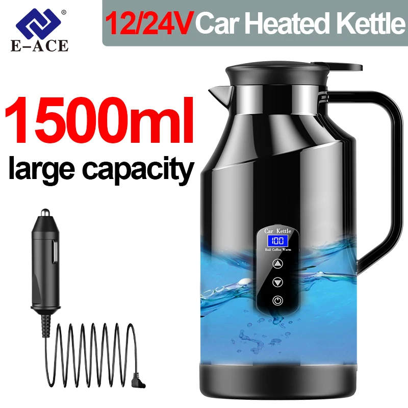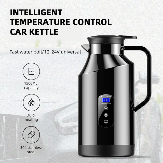 1500ML Electric Heating Car Kettle 12V 24V Rapid Boiling 304 Stainless Travel camping Dteel Hot Water