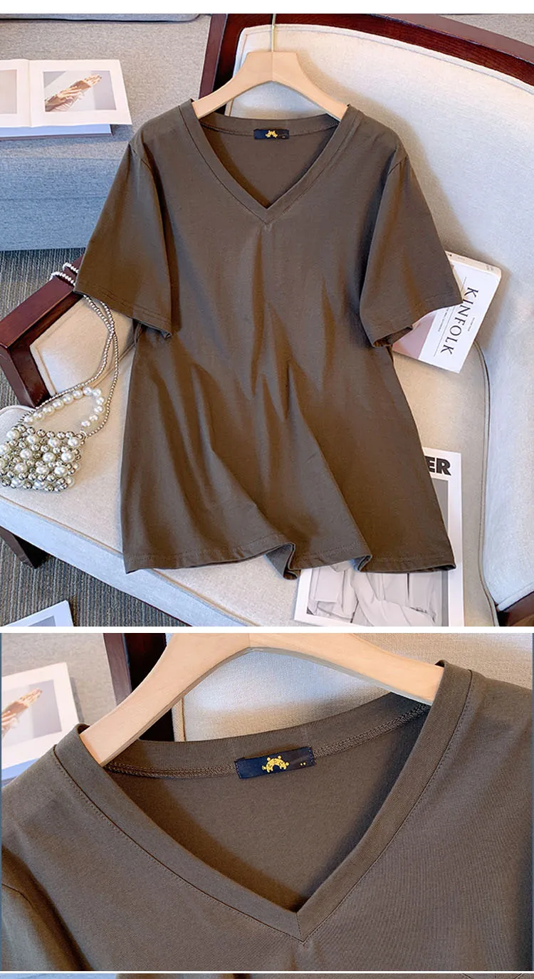 Women's Striped Cotton Knit Bottoming Tops, Long Sleeve T-Shirt, Loose Casual Basic Tees, Simple Clothing, Plus Size, Autumn 4XL