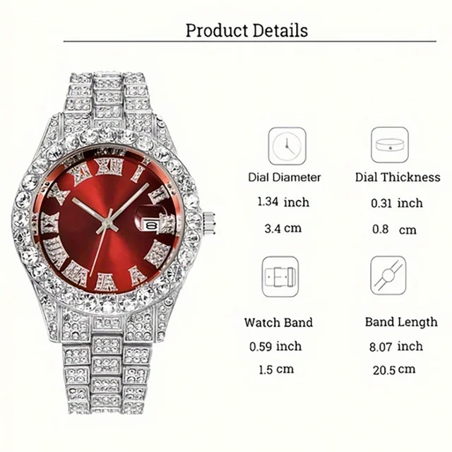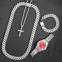 16mm Hip Hop Miami Cuban Link Chain Set Necklace +Watch+Bracelet Creative Iced Out Shiny Trendy Stylish
