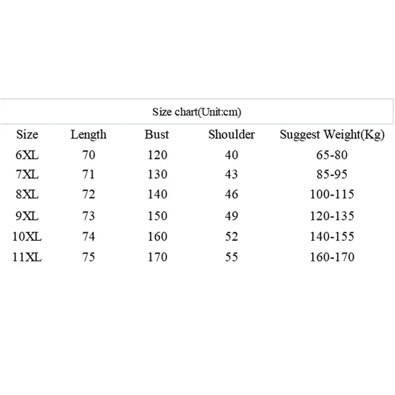 {"sizeInfoList":[{"length":{"cm":"120","inch":"47.24"},"size":"6XL","vid":-1},{"length":{"cm":"130","inch":"51.18"},"size":"7XL","vid":-2},{"length":{"cm":"140","inch":"55.12"},"size":"8XL","vid":-3},{"length":{"cm":"150","inch":"59.06"},"size":"9XL","vid":-4},{"length":{"cm":"160","inch":"62.99"},"size":"10XL","vid":-5},{"length":{"cm":"170","inch":"66.93"},"size":"11XL","vid":-6}]}