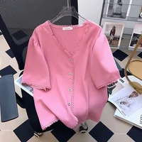 170Kg Plus Size Women’s Bust 170 Summer Loose Small Fragrance Top Short Sleeve T-shirt Cardigan
