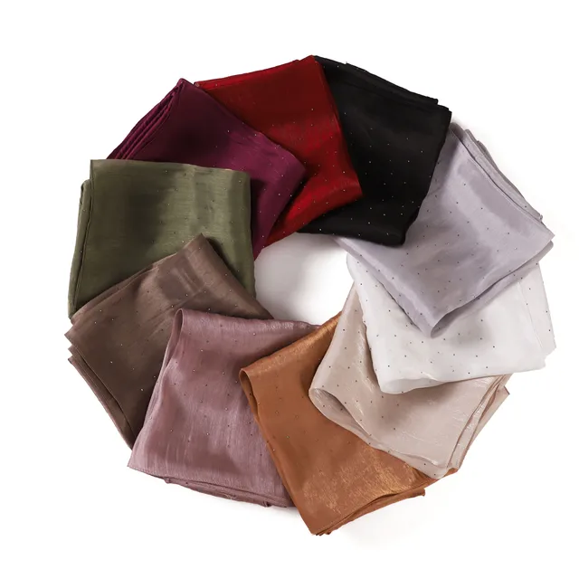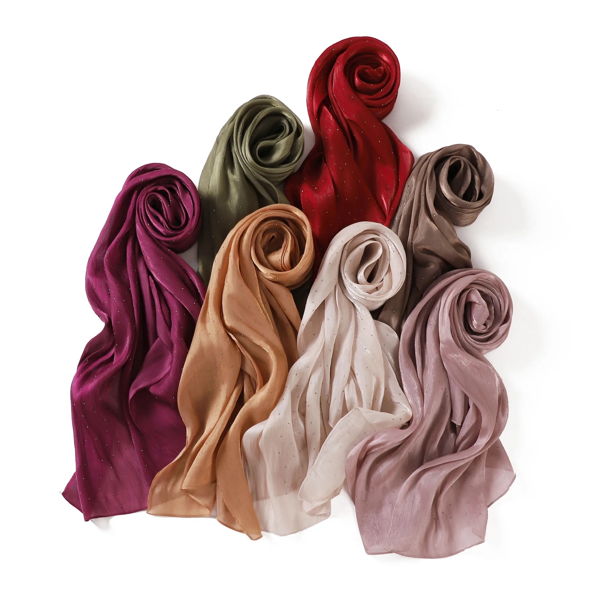 175*70cm Luxury Silk Scarf Muslim Hijab Women Diamonds Headscarf Shawls Wrap Bandanas Headband Bufanda Foulard Turbante Mujer