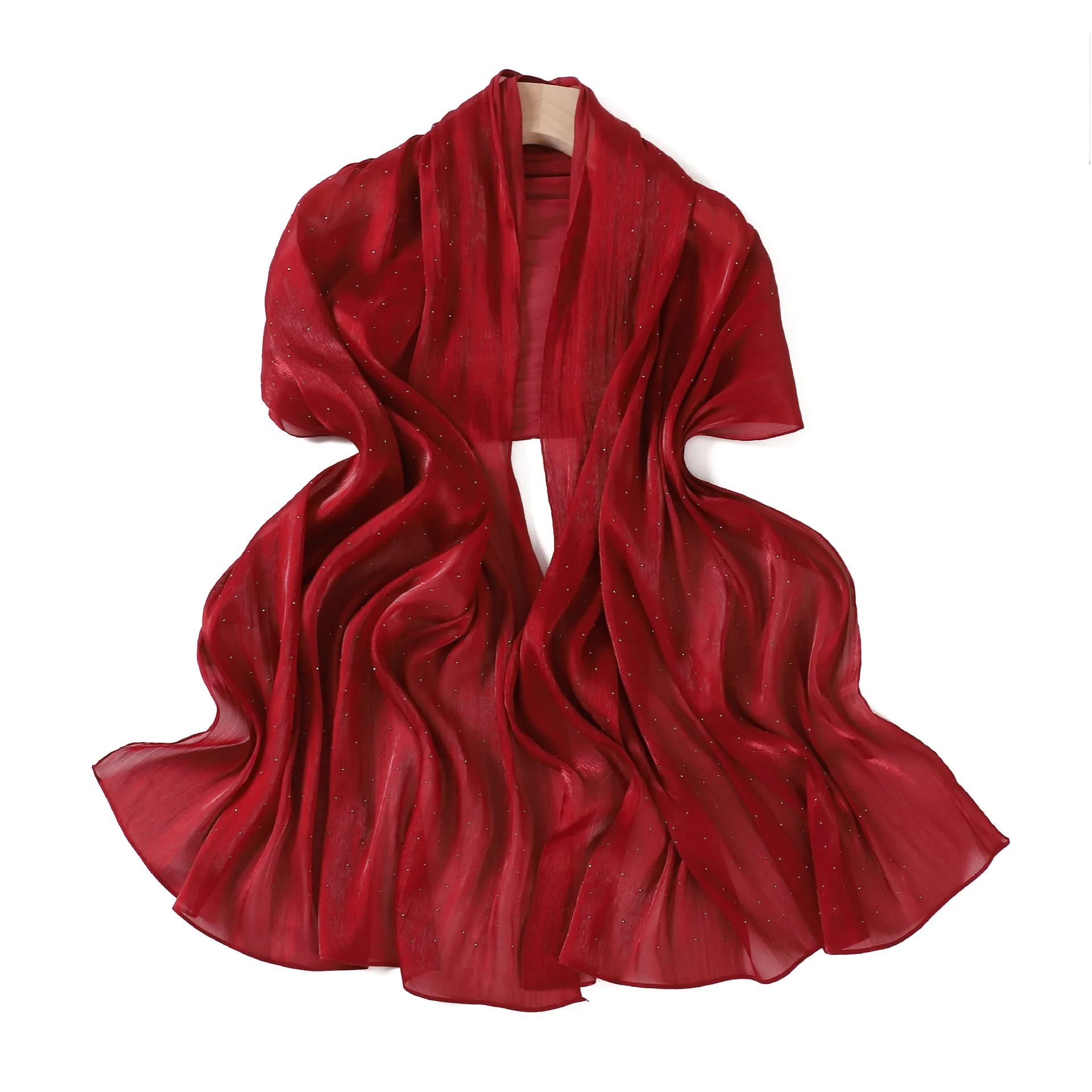 175*70cm Luxury Silk Scarf Muslim Hijab Women Diamonds Headscarf Shawls Wrap Bandanas Headband Bufanda