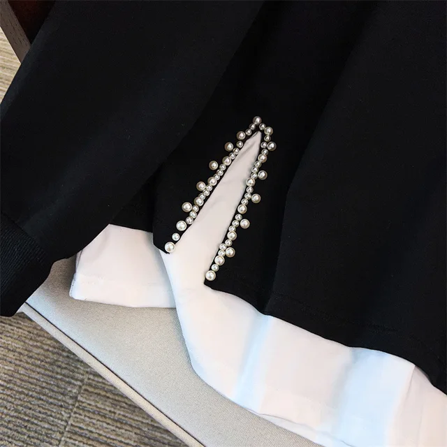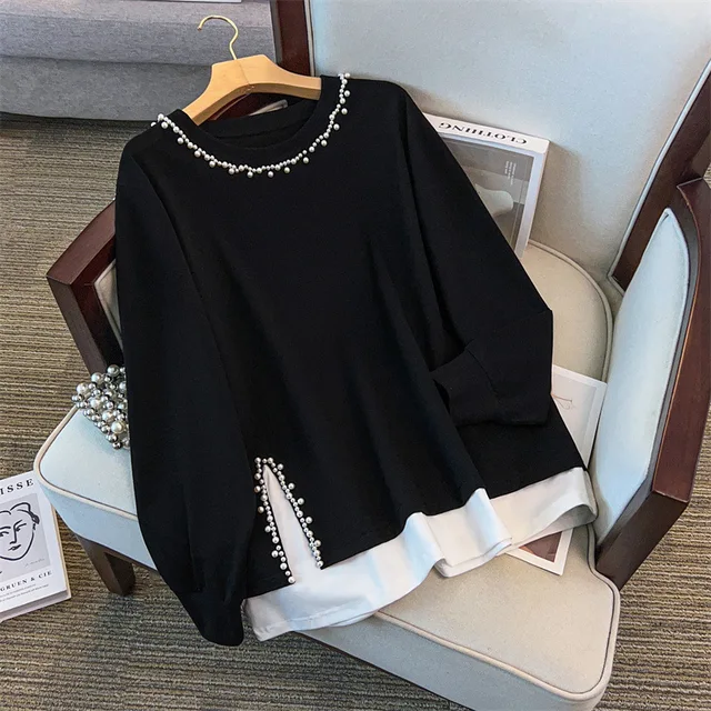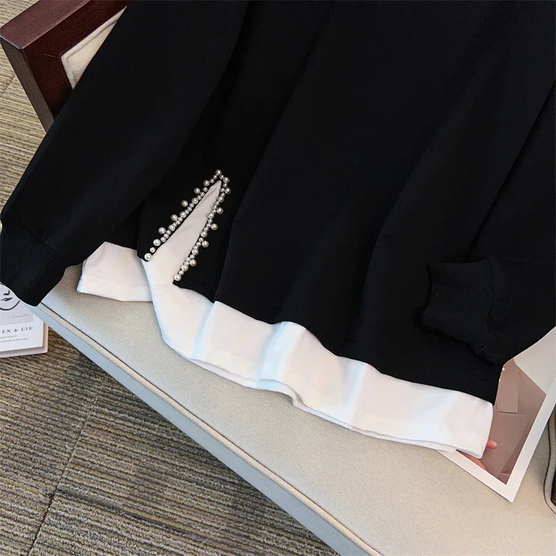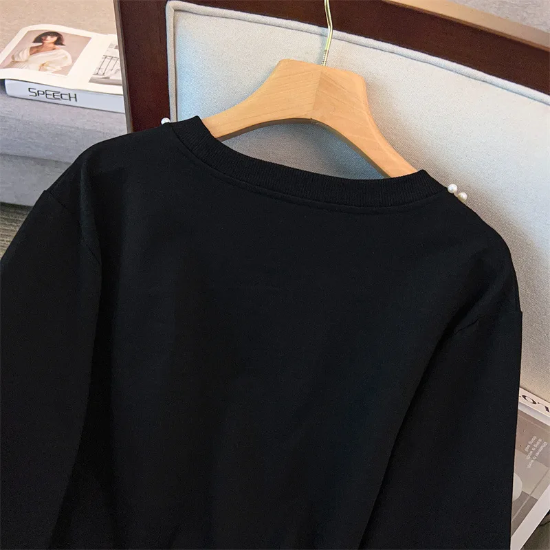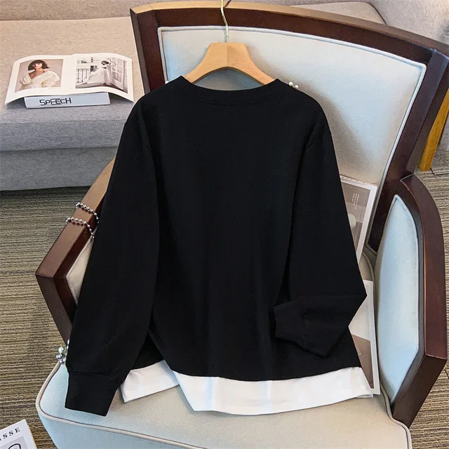 175Kg Plus Size Women’s Bust 170 Autumn Loose Round Neck Long Sleeved Printed Sweatshirt Black