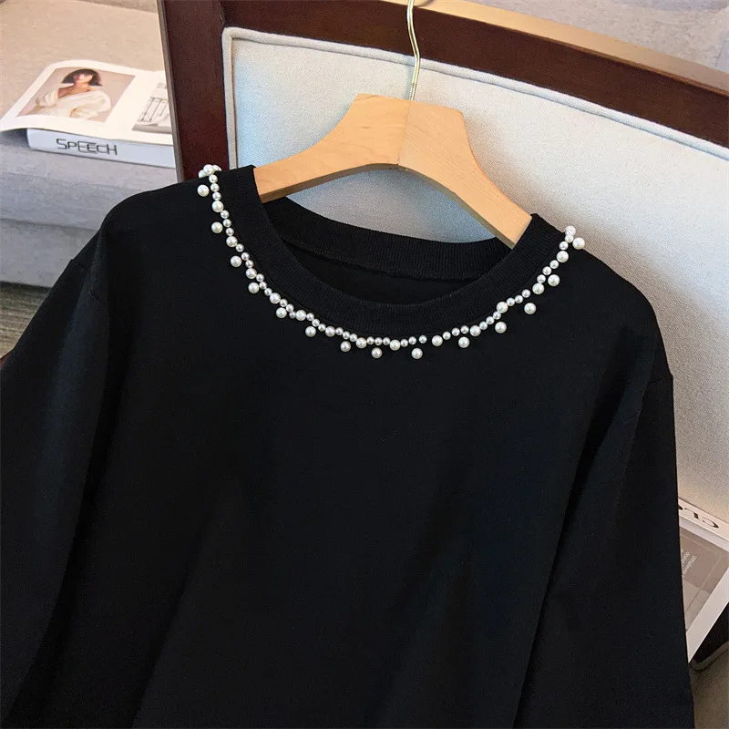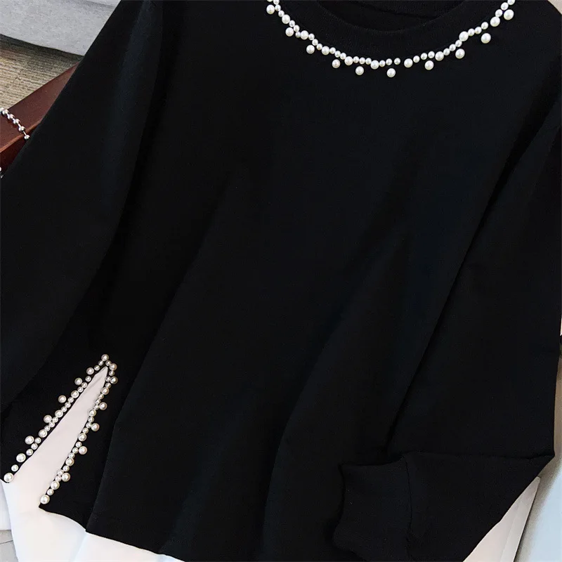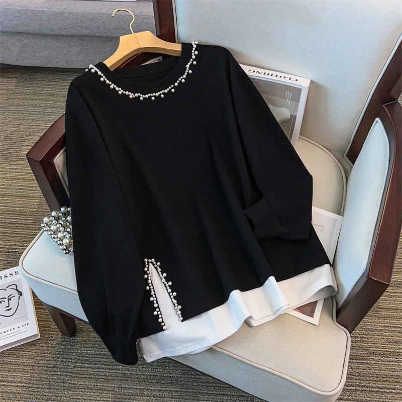 175Kg Plus Size Women's Bust 170 Autumn Loose Round Neck Long Sleeved Printed Sweatshirt Black 4XL 5XL 6XL 7XL 8XL 9XL