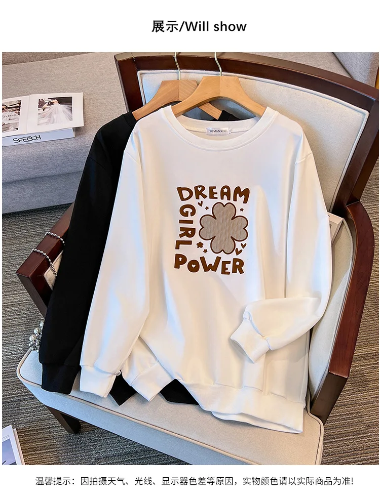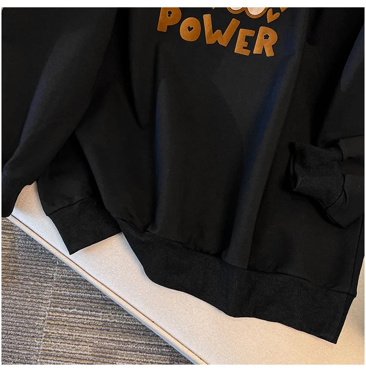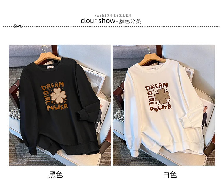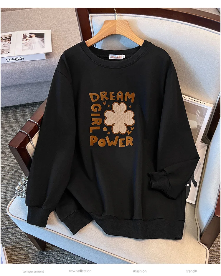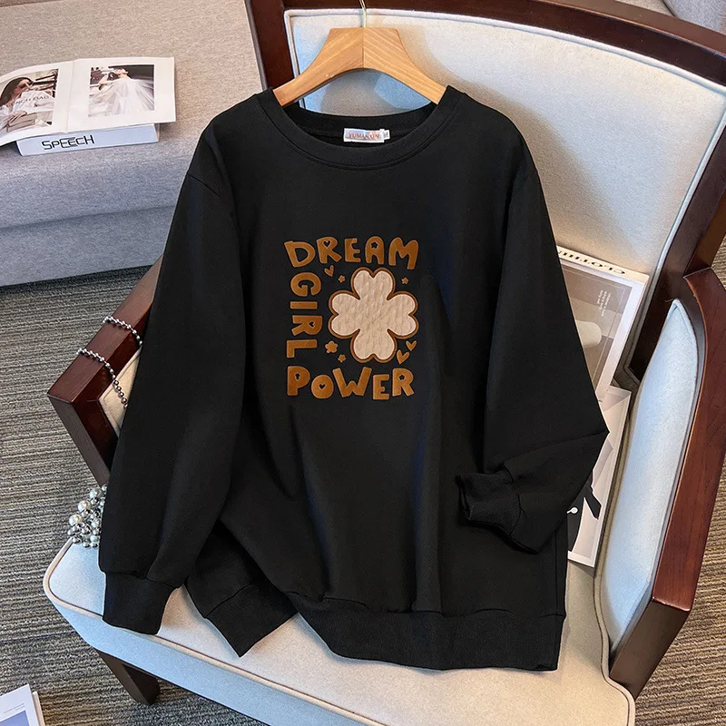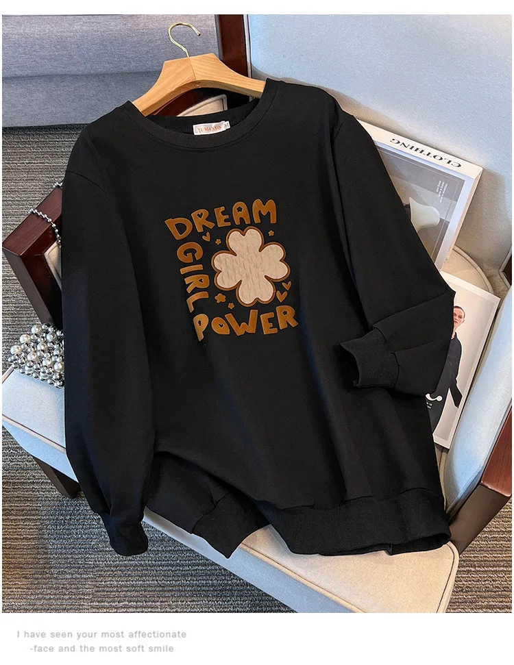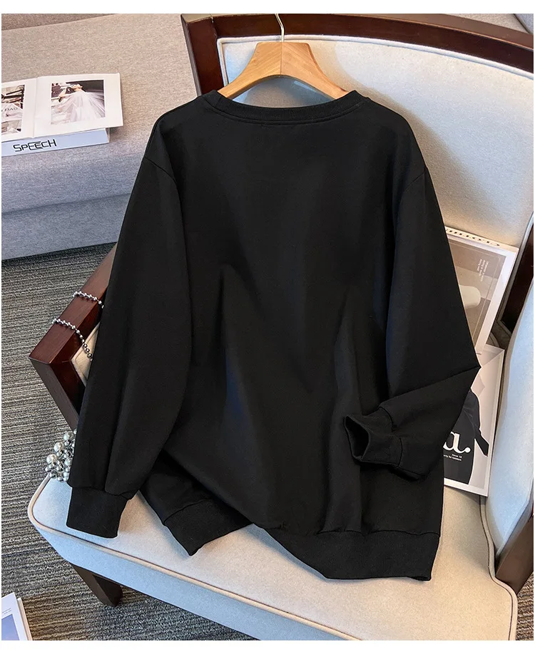 175Kg Plus Size Women’s Bust 170 Autumn Loose Round Neck Long Sleeved Printed Sweatshirt Black