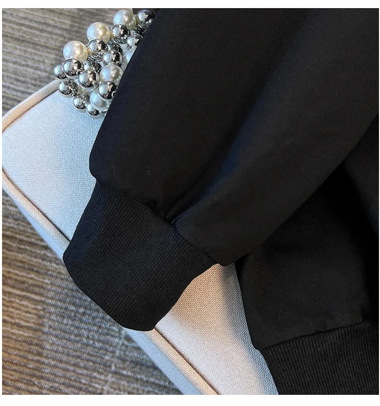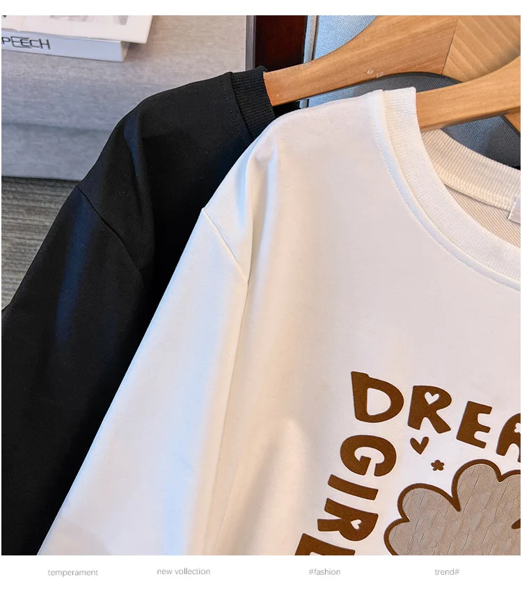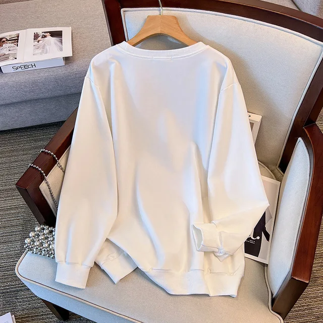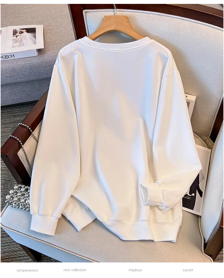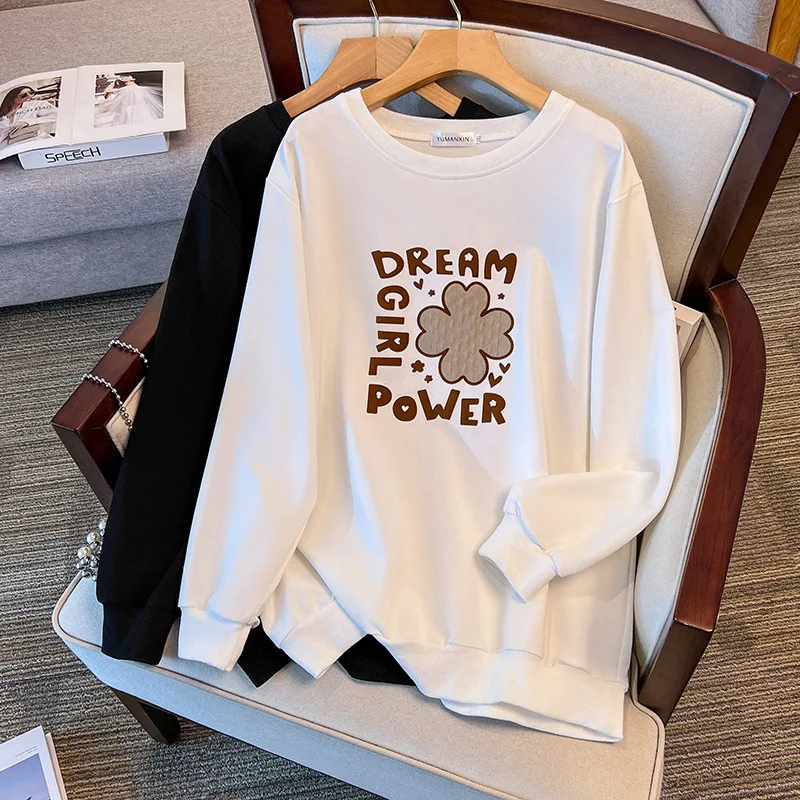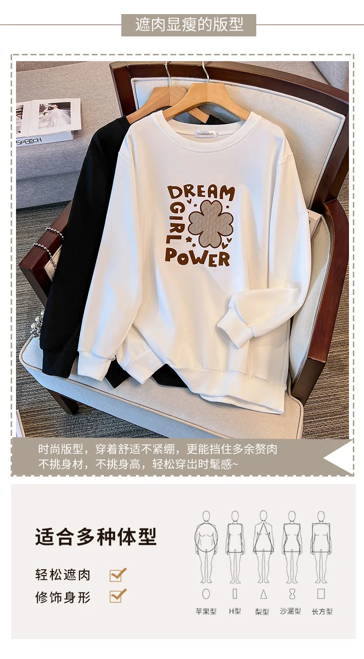 175Kg Plus Size Women’s Bust 170 Autumn Loose Round Neck Long Sleeved Printed Sweatshirt Black